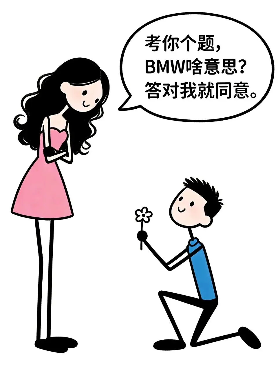 搞笑漫画:男:做我女朋友吧!我超喜欢你!女:考你个题!BMW啥意思?答对我就同意!男:这我知道,别摸我!女:服了你个老六!是方向盘