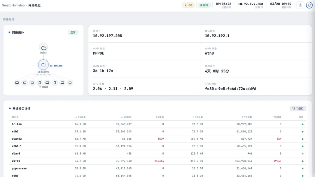 我最近在 Claude Code 的帮助下开发了人生第一个开源项目 smart-homelab,一个为 OpenWrt 路由器打造的 AI 智能监控面板,完全自托管,零云依赖,一条命令启动。