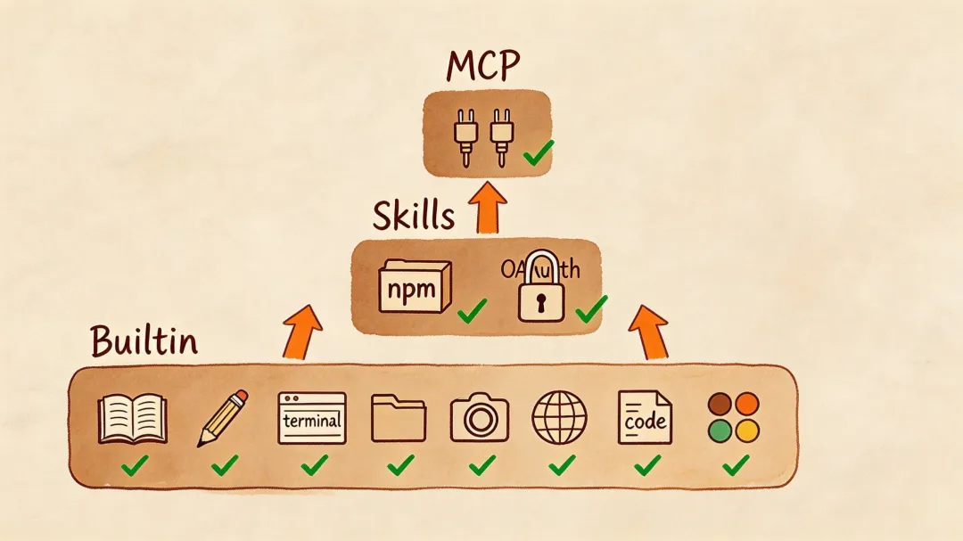 二、三层工具体系:从内置到生态