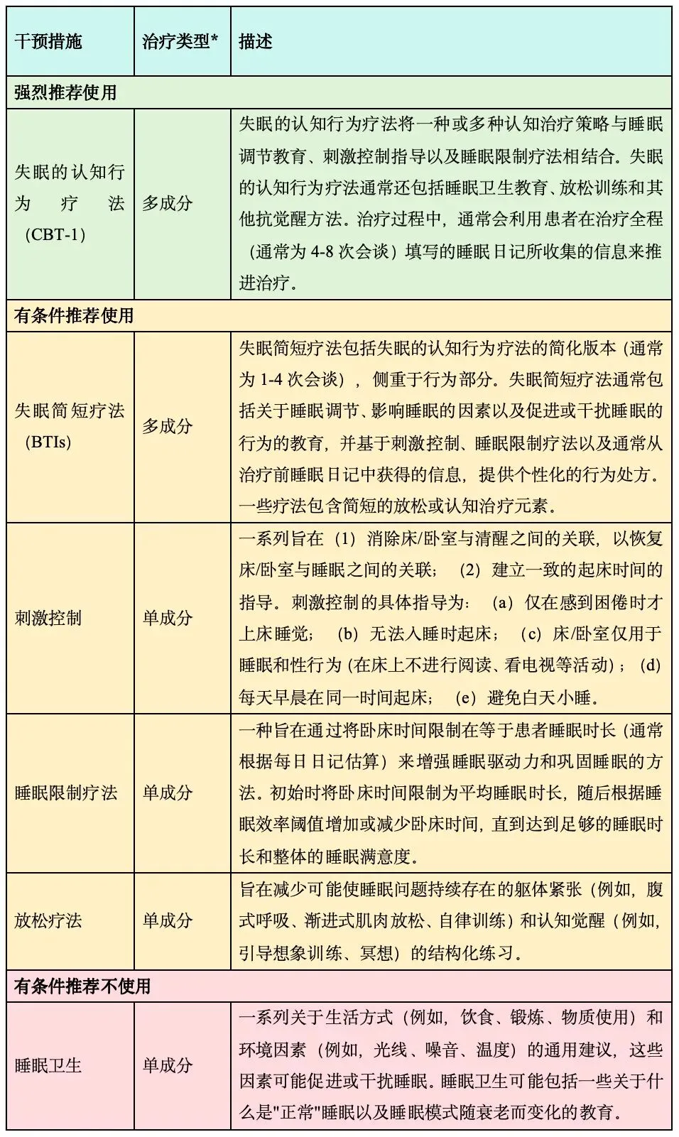 成人慢性失眠障碍的行为和心理治疗:美国睡眠医学学会临床实践指南