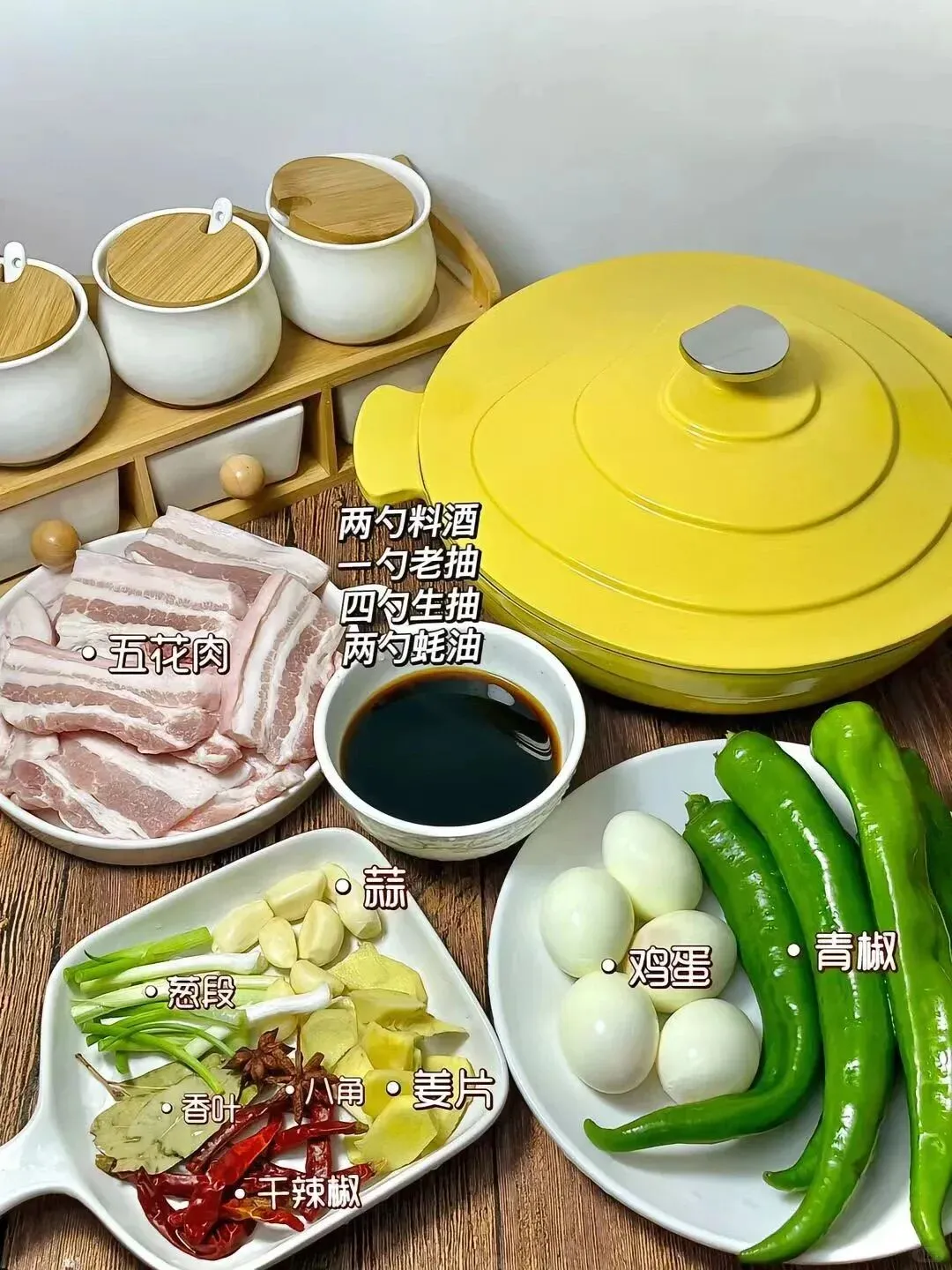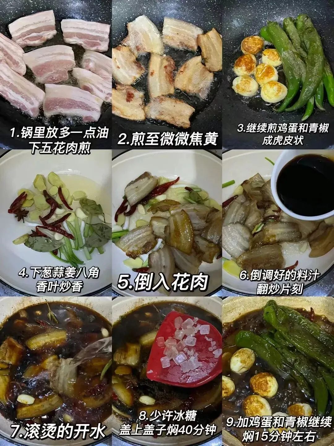 🎉 🌟 食材准备: 新鲜五花肉、鸡蛋、青椒、葱、蒜、姜、八角、香叶、冰糖、干辣椒