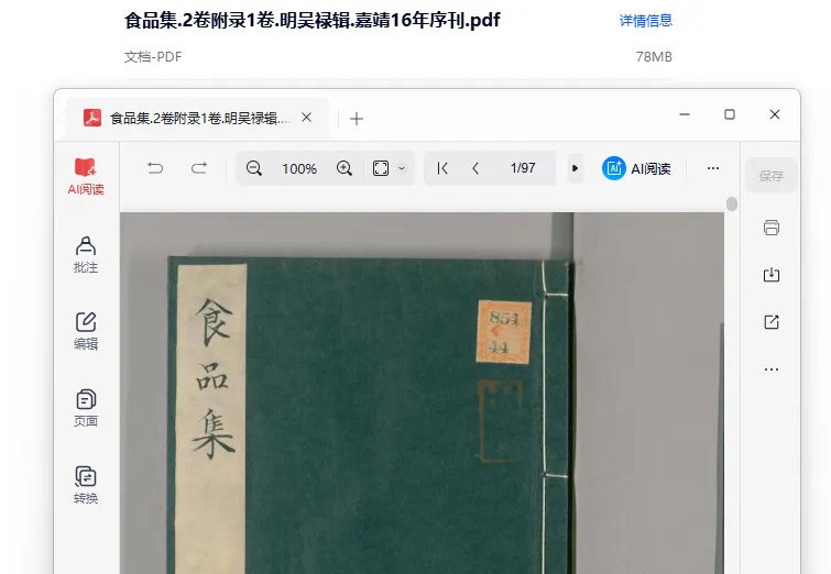 食品集.2卷附录1卷.明吴禄辑.嘉靖16年序刊.pdf