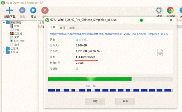 作为能媲美IDM的存在,NDM的下载速度绝对是顶级水准——最大支持32线程同时下载,采用文件分段技术,能充分榨干你的网络带宽,下载速度比普通浏览器快8倍不止。