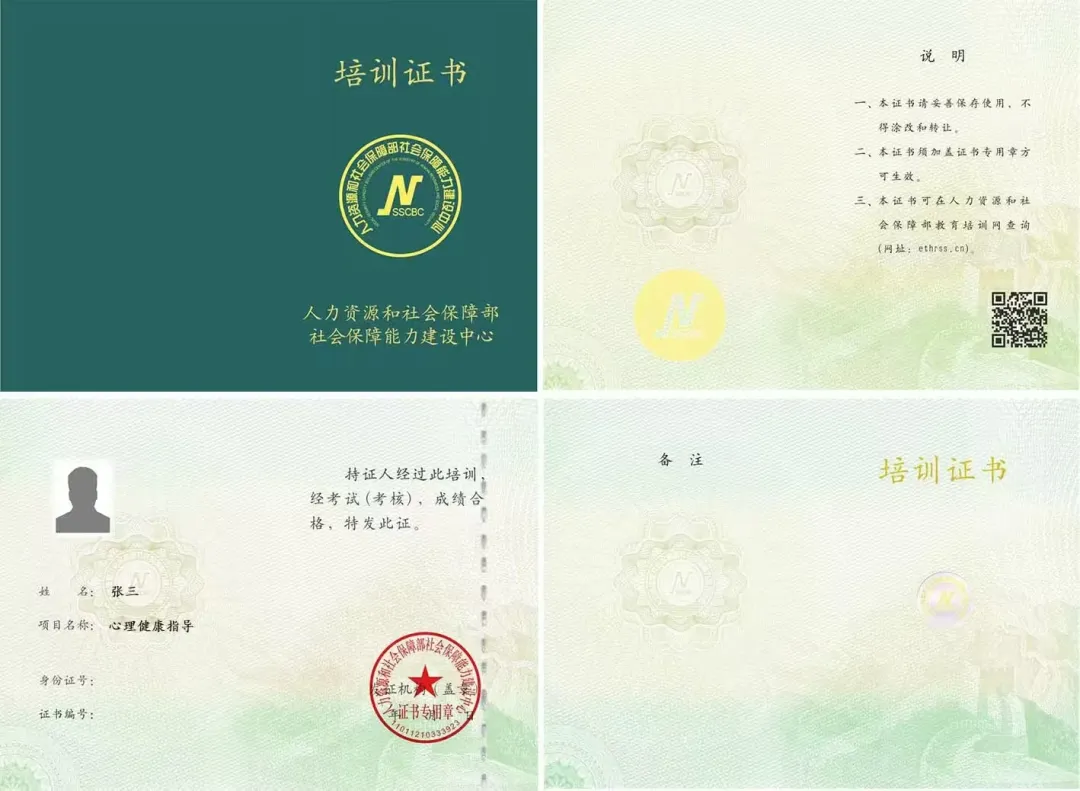为提高我国技能人才培养质量,加强高技能人才队伍建设,人力资源和社会保障部社会保障能力建设中心面向全国开展体态管理顾问、医疗陪诊顾问、中医健康管理技术、心理卫生建设、家政护理员、中医艾灸疗法等职业培训项目。凡参加培训并考核合格者,由人力资源和社会保障部社会保障能力建设中心颁发相应证书,证书在人力资源和社会保障部教育培训网查询。