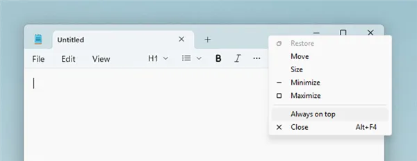始终置顶功能现在支持右键标题栏快速激活,并可通过Ctrl+Shift+加号/减号调节窗口透明度。