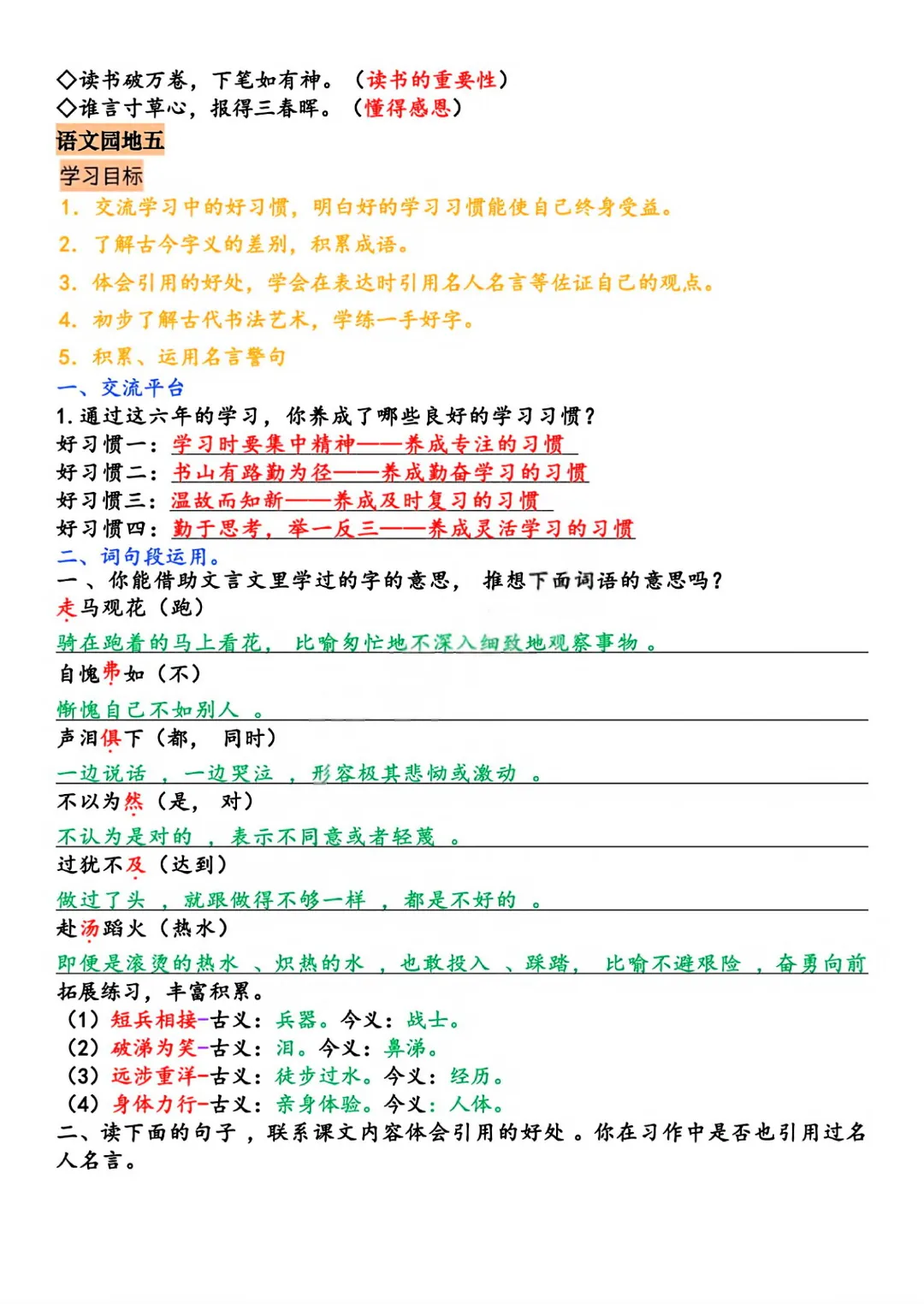 今天给大家分享的是:六年级下册语文【统编版】语文园地全册考点总结丨完整高清电子版可打印