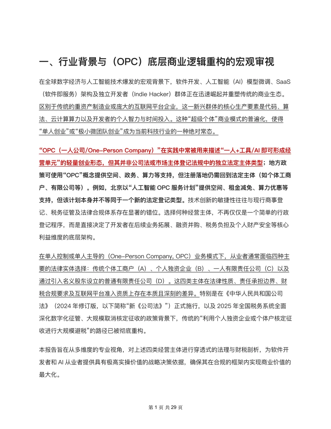 参考资料:《“一人公司”(OPC)在软件开发与AI从业场景下的经营主体架构深度比较分析》(如下部分展示 )