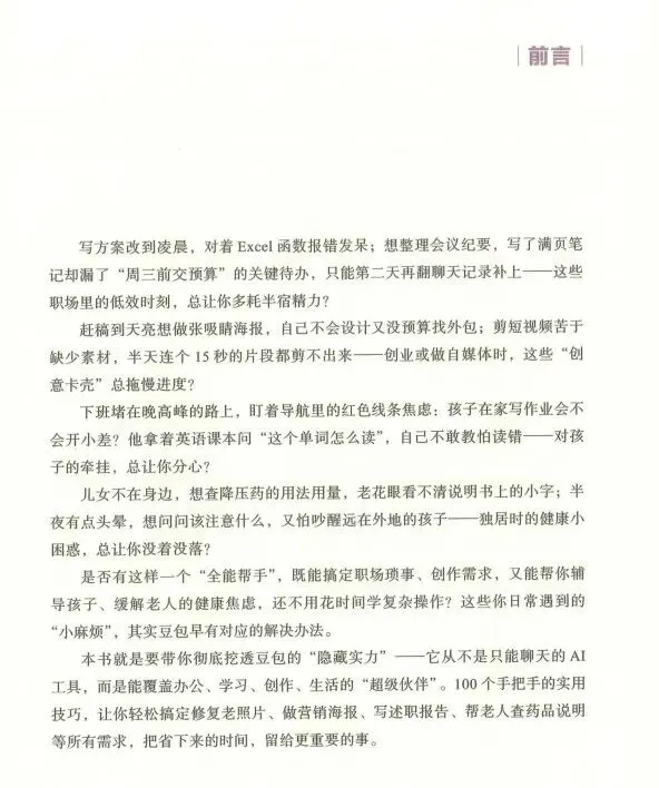 最近挖到一本宝藏书——《豆包使用秘笈》,直接把豆包的100个实用技巧掰开揉碎了讲,看完感觉自己之前用的都是“假豆包”!