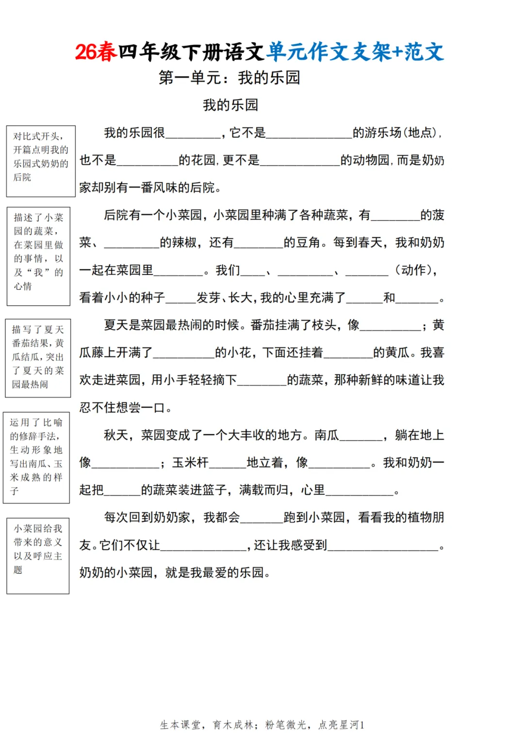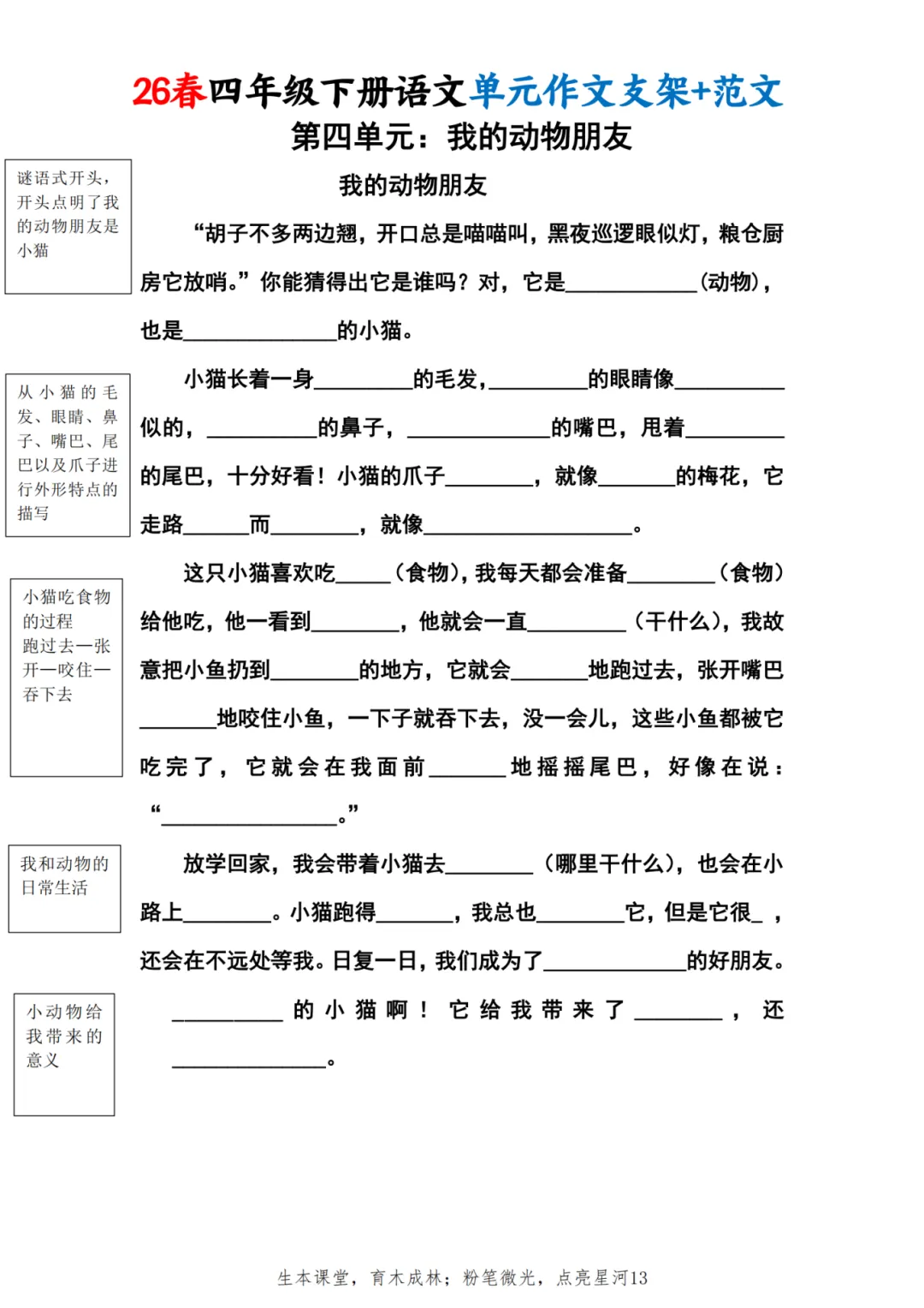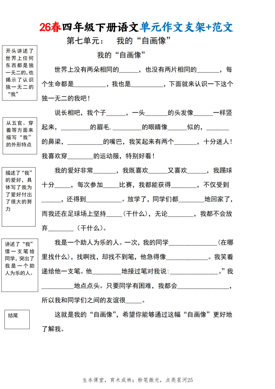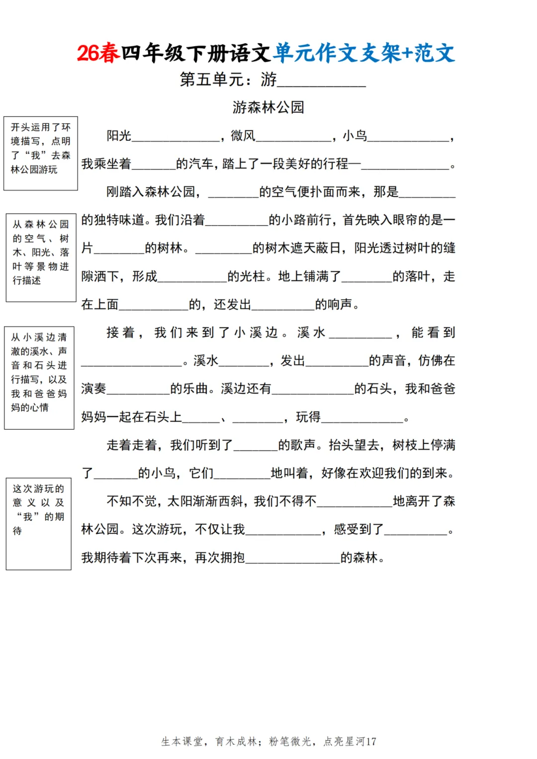 🌸有粉丝私信我,需要四下语文作文,应粉丝需求,我为大家整理了四年级下册作文范文。支架指的是大概框架结构,有助于孩子自己创作。大家有任何需求随时给我留言,我看到就会回复,尽我所能给大家找到大家需要的资料!