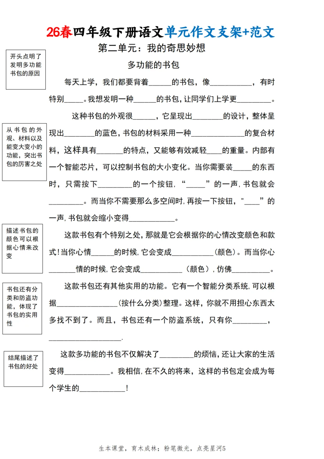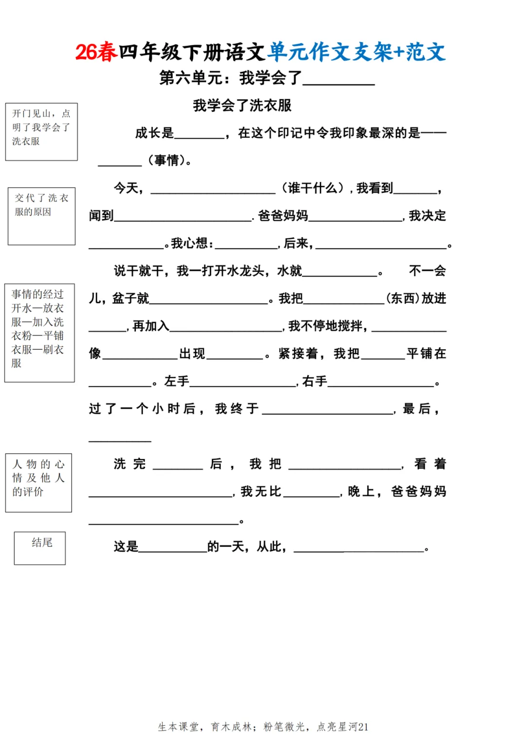 四年级下册语文习作范文模板结构支架,电子版,可打印