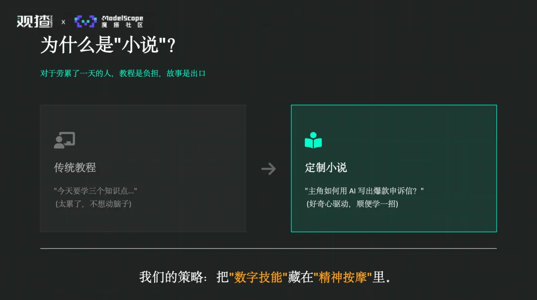 做一个「人生小爽文定制器」。一个用AI生成“爽文式人生片段”的工具,但在爽点之间,悄悄嵌入真实、可用的知识点。不是说教,而是顺着读下去的时候,“顺便知道了一点”。