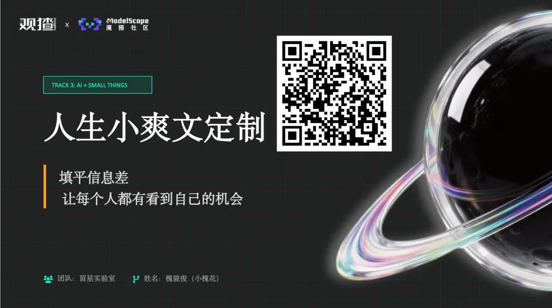 最终,在 AI 环球黑客松上,他完成了「人生小爽文定制器」的落地展示。