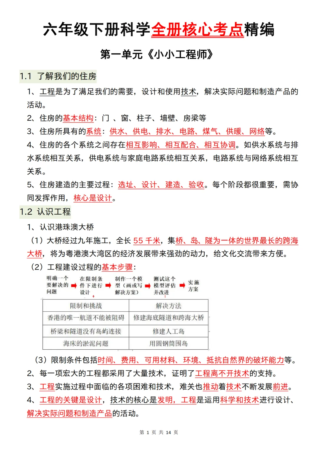 今天给大家分享的是:六年级下册科学【教科版】【26春全册核心考点精编知识点总结】丨完整高清电子版可打印