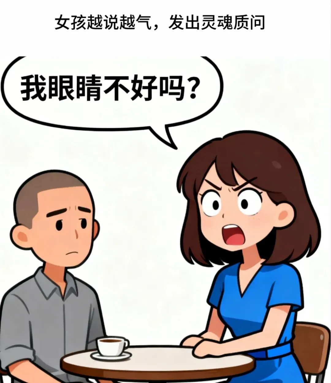 疯狂漫画:今天去相亲,女孩问我:你真的没有谈过女朋友?我说:没有.女孩说:那我们不合适,她们都看不上凭啥我看上,我眼睛不好吗?