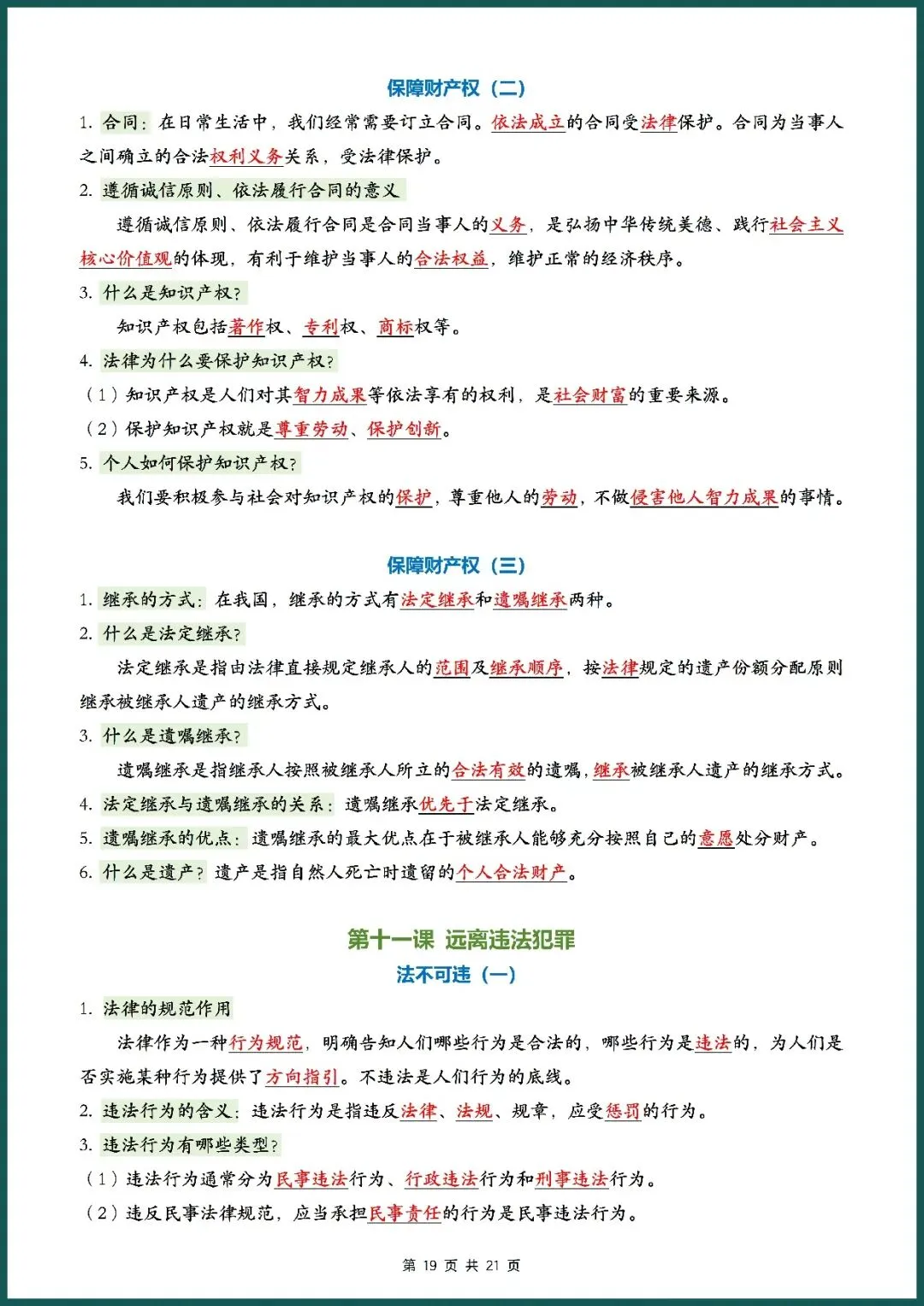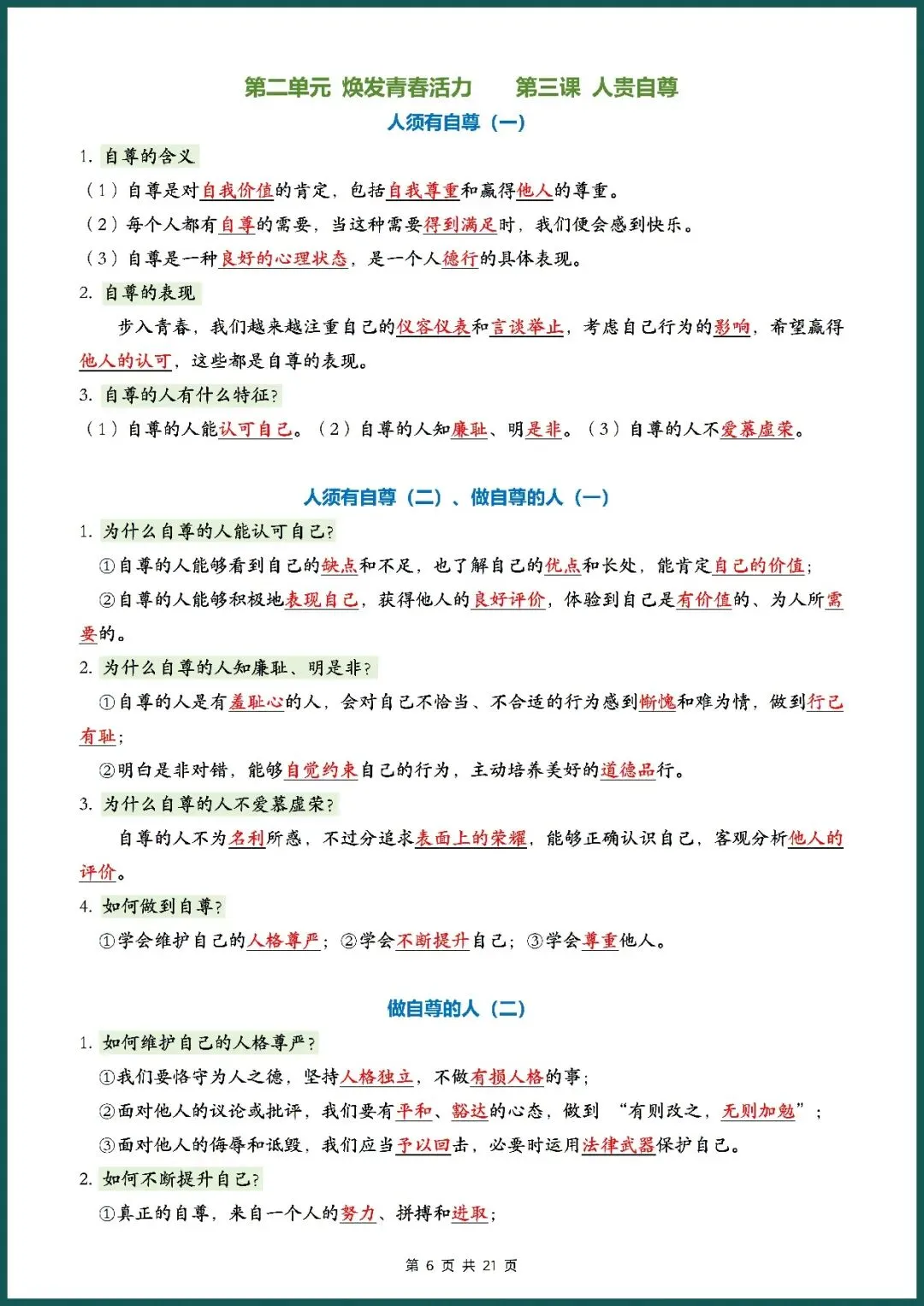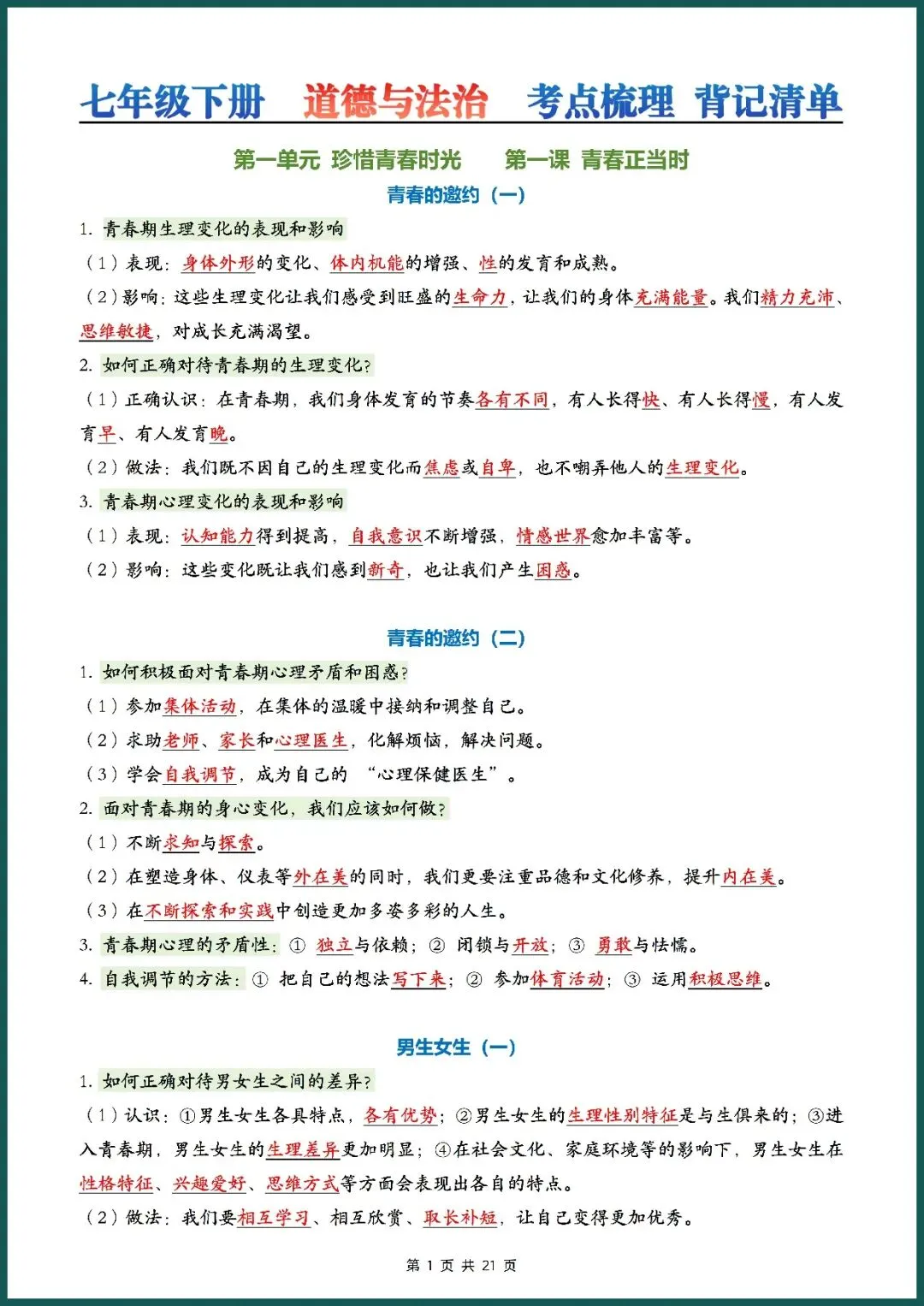 知识总结丨26新七下道法记背清单(电子版可打印)