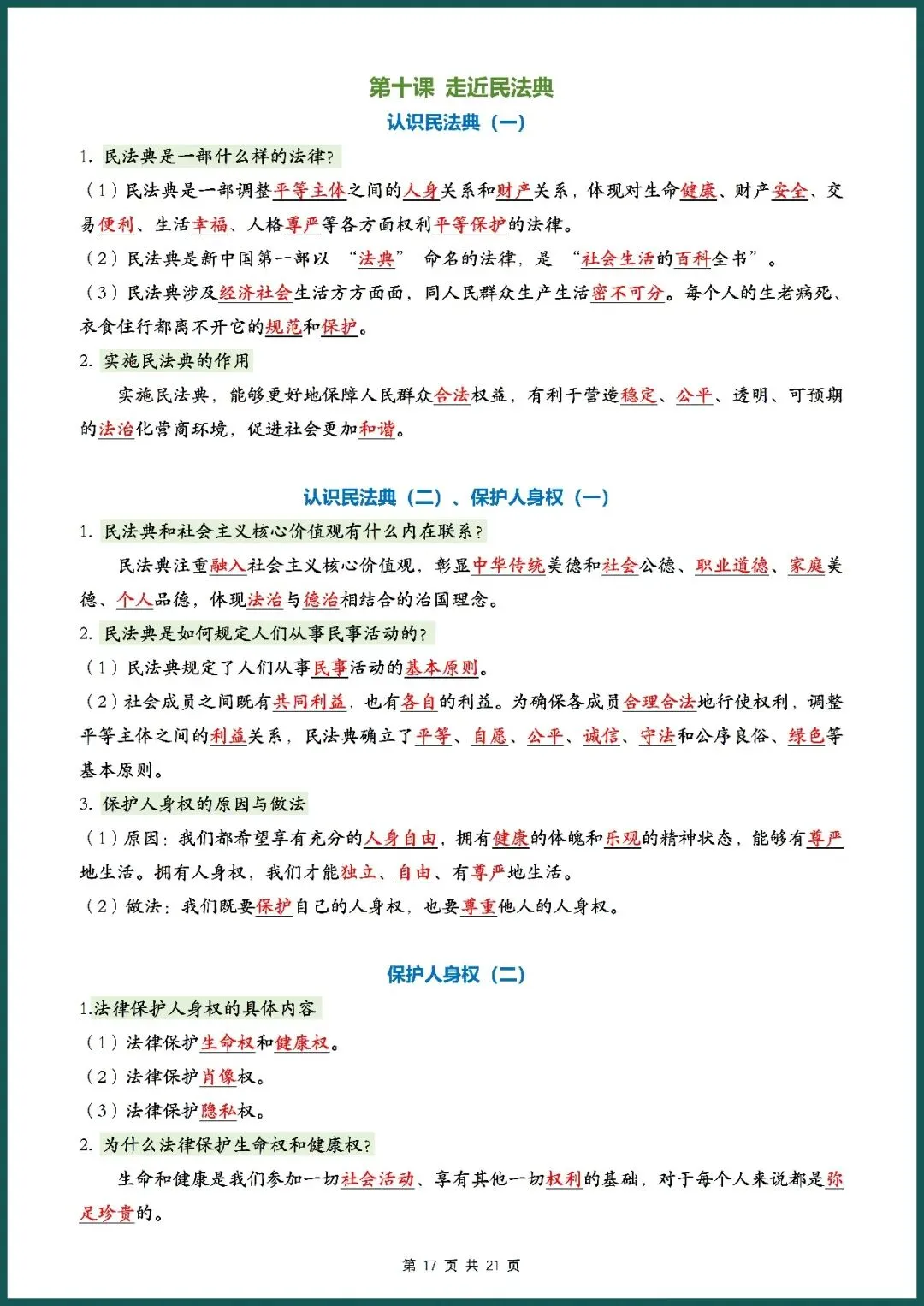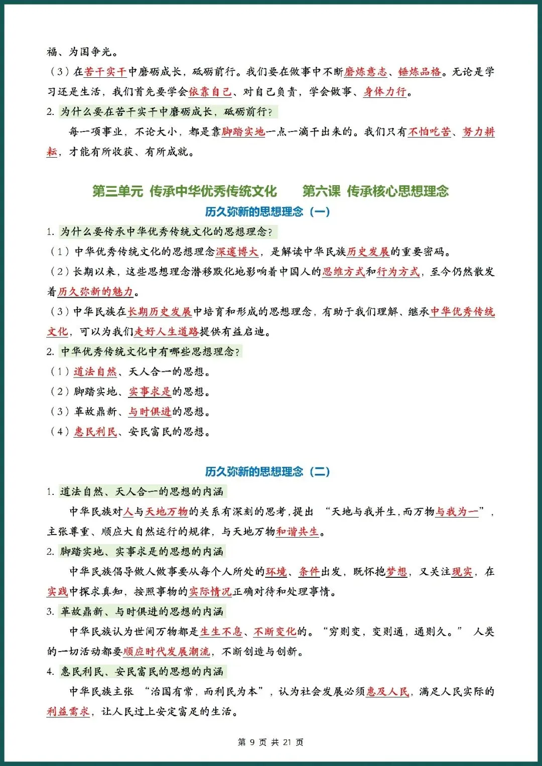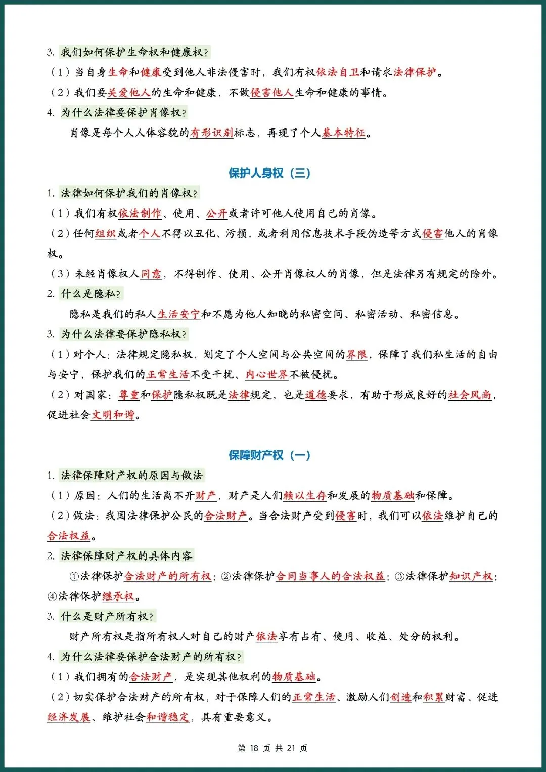 知识总结丨26新七下道法记背清单(电子版可打印)