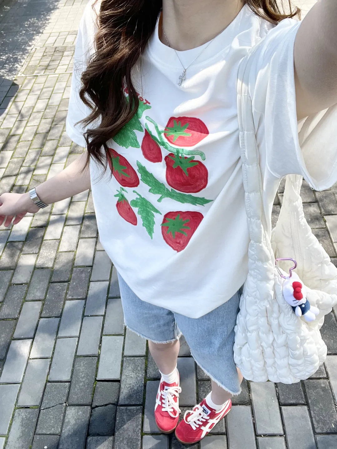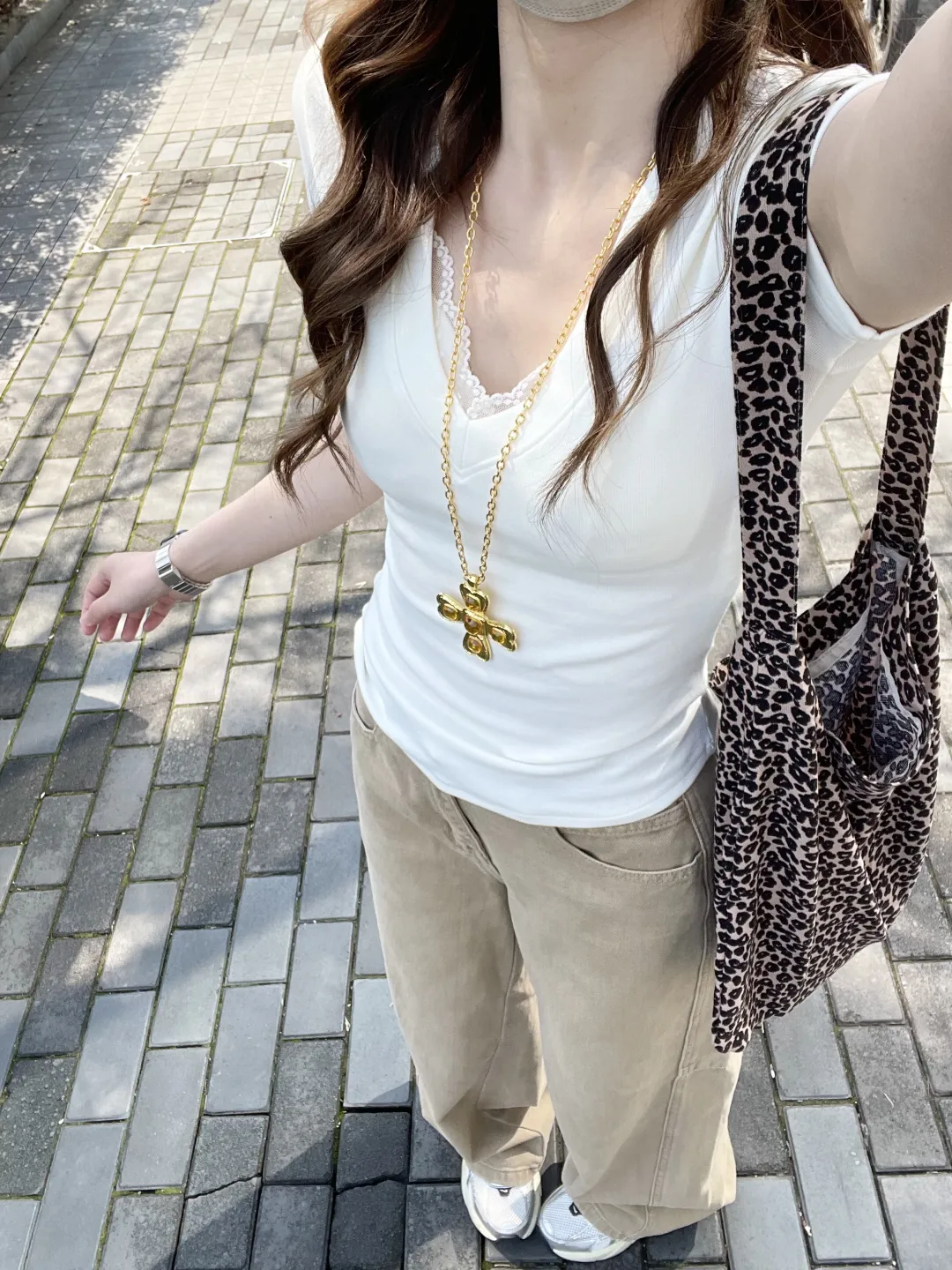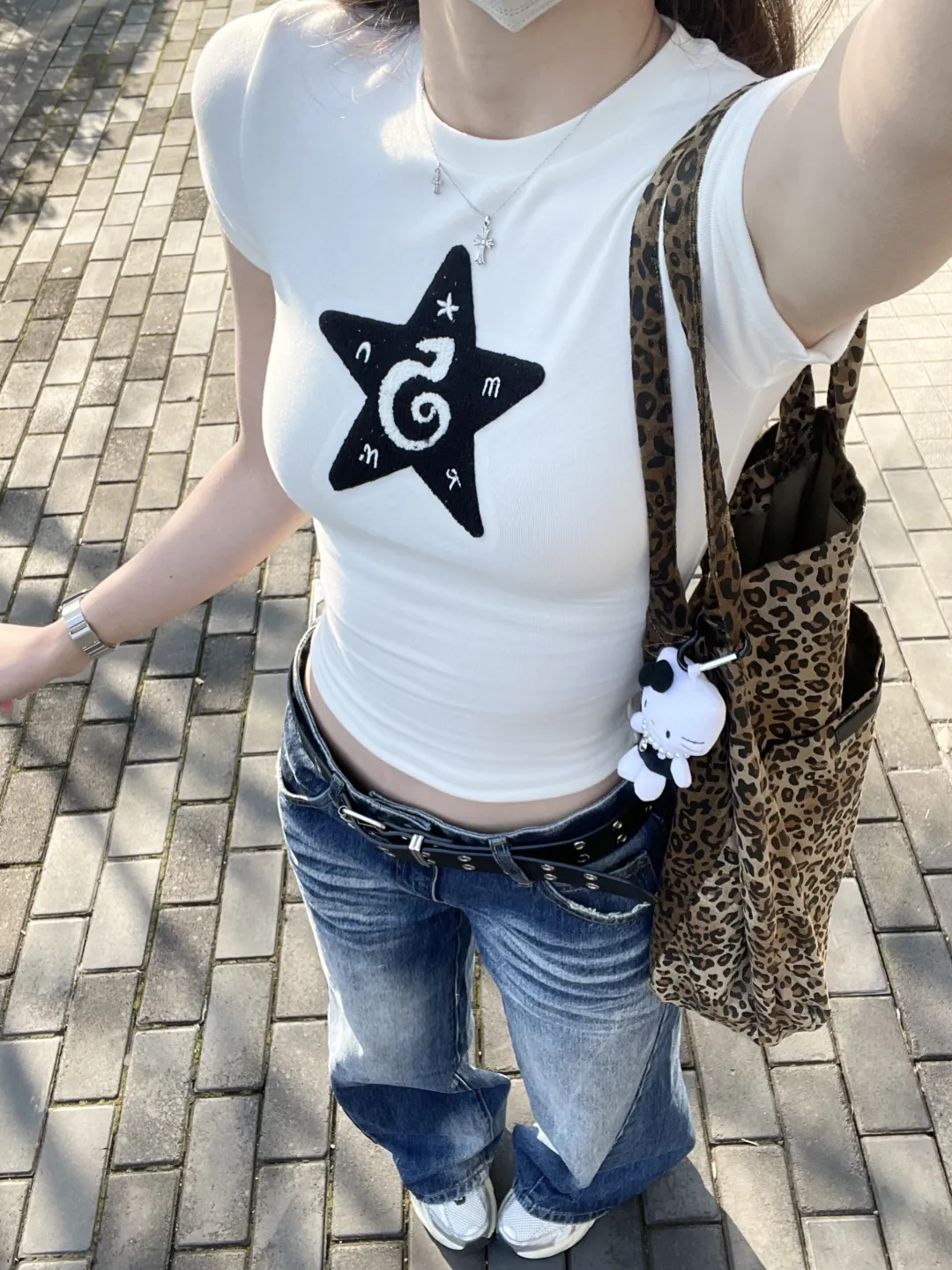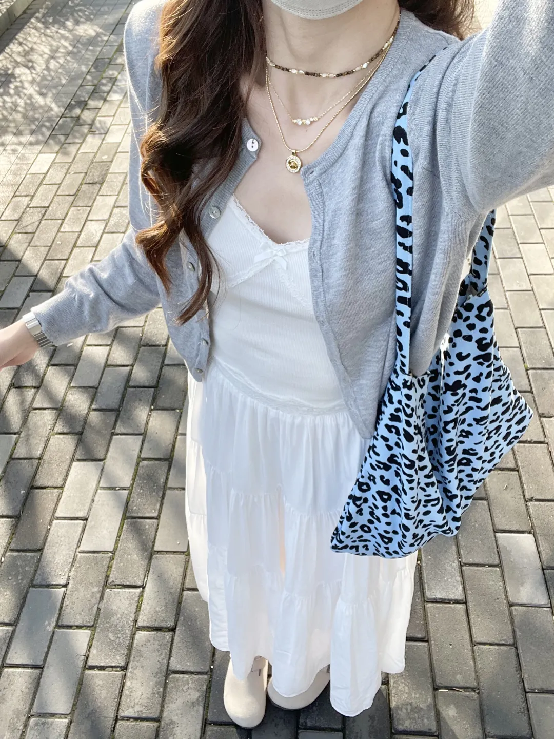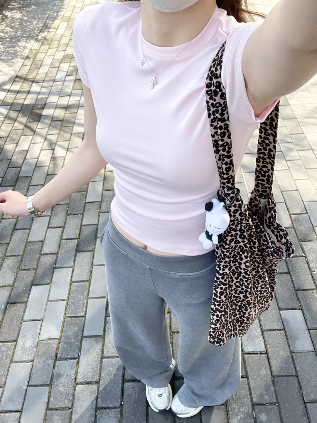 包包是穿搭的点睛之笔——米白色褶皱包像揉碎的云朵,蓝黑豹纹包带着野性的甜,红色皮质包添一抹明艳;Hello Kitty挂件垂在包侧,与金属项链的冷光相映成趣。手表在腕间闪着银辉,珍珠项链叠戴出层次感,这些小细节像藏在衣角的惊喜,让每一套穿搭都有了灵魂。从温柔针织到休闲印花,从甜酷豹纹到慵懒运动风,每一种风格都是早春的注脚,把春天的气息穿在身上,每一步都踩着春风的节奏。