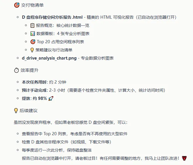 一句话,AI助手帮我做了一个硬盘扫描报告