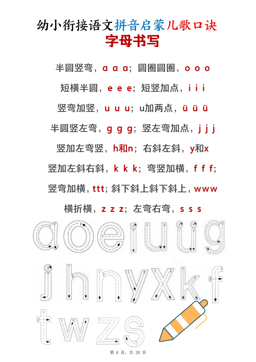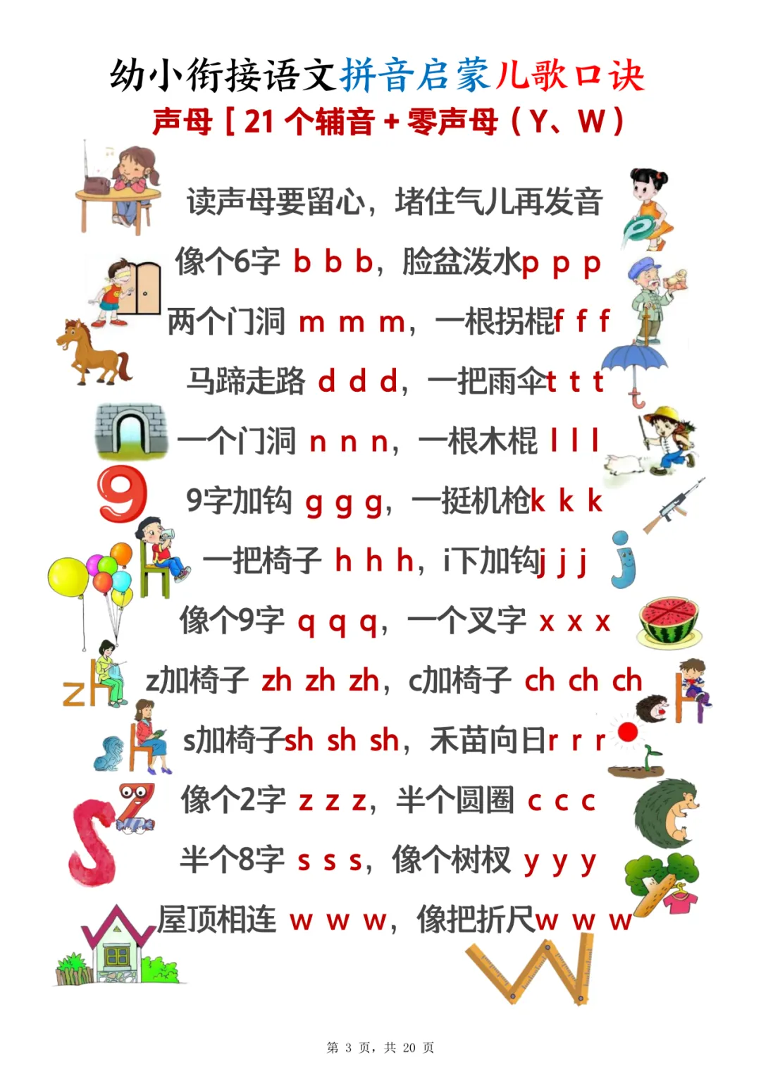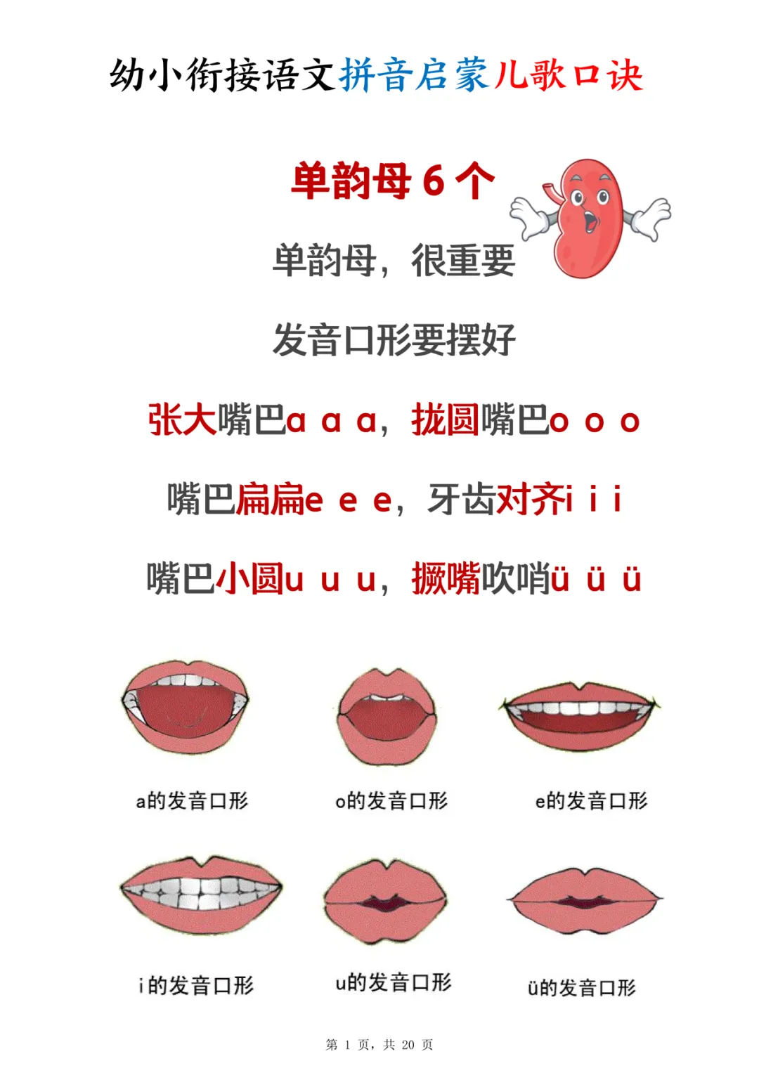 今日分享:【【语文】语文拼音启蒙儿歌口诀(20页)】,家长们快打印给孩子安排上吧;