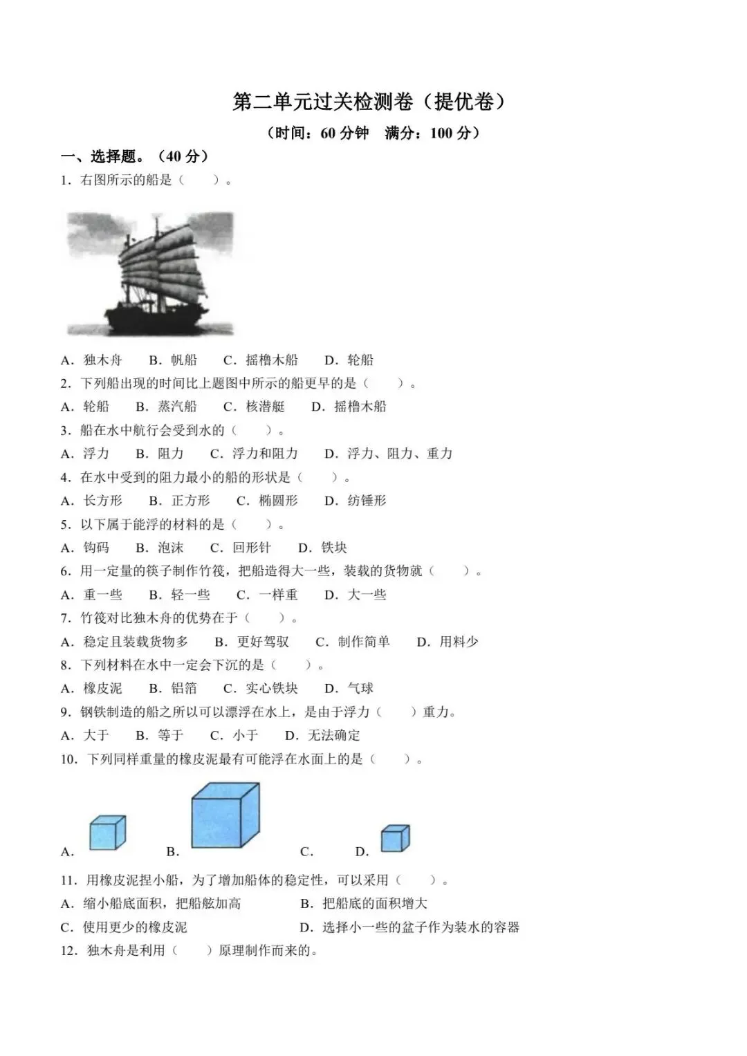 今日给大家分享的是:26年春新教科版五年级下册科学《第二单元测试卷》,含答案,可电子版下载打印。