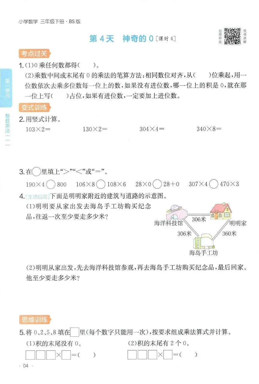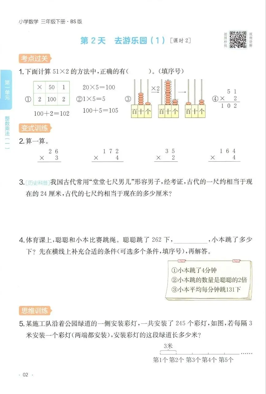 三年级数学下册北师版26春课后小练习电子版免费领取