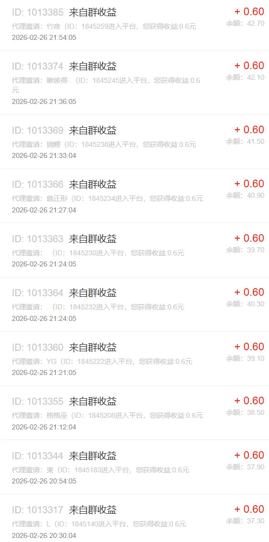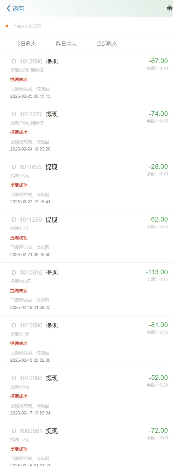 收入后台可见,清晰明了。到账时间不会超过1分钟,手提现。