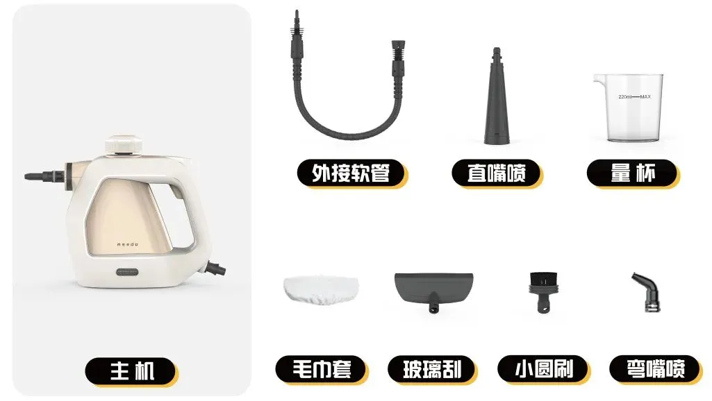 1台米多蒸汽清洗机=厨房清洁器+玻璃清洁机+清洁剂+除螨仪+缝隙清洁刷+熨烫机