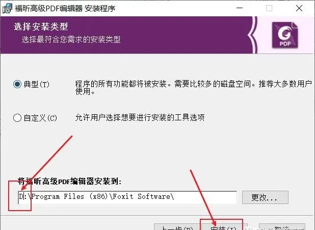 6.软件默认安装在C盘,直接将C改成D,然后点击安装;
