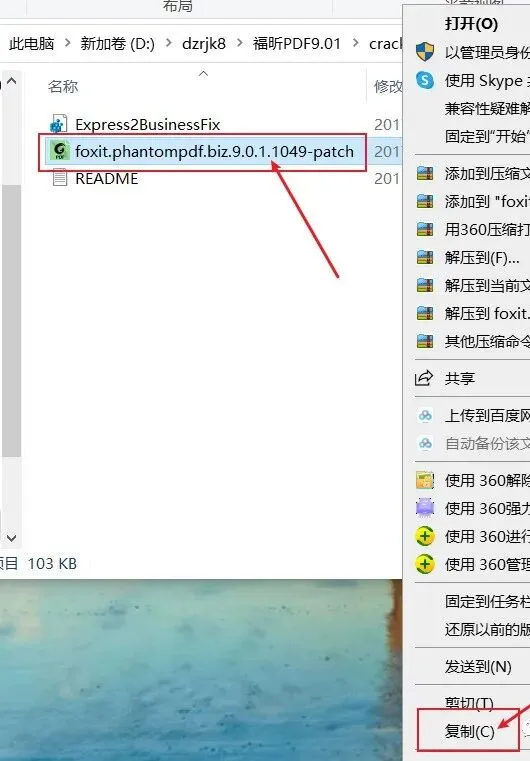 11.右键复制foxit.phantompdf.biz.9.0.1.1049-patch程序;