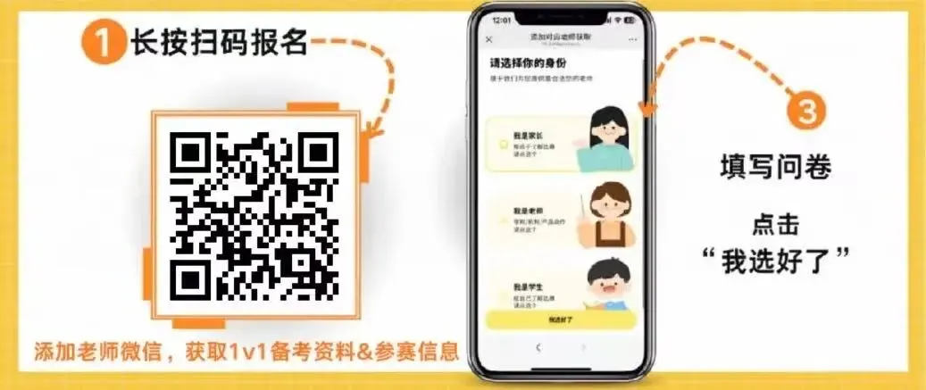 请您扫码选择身份,将为您安排专属赛事咨询师,提前锁定比赛名额,快人一步获取参赛资格,同时为您提供最新资料