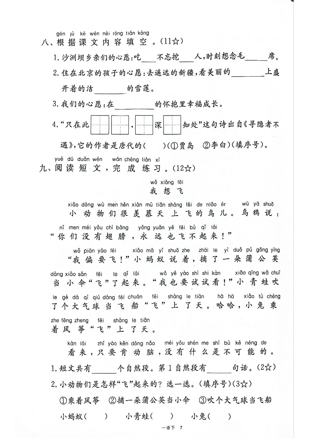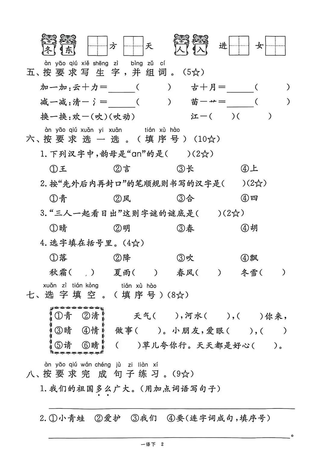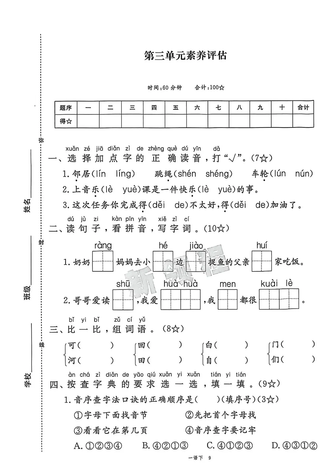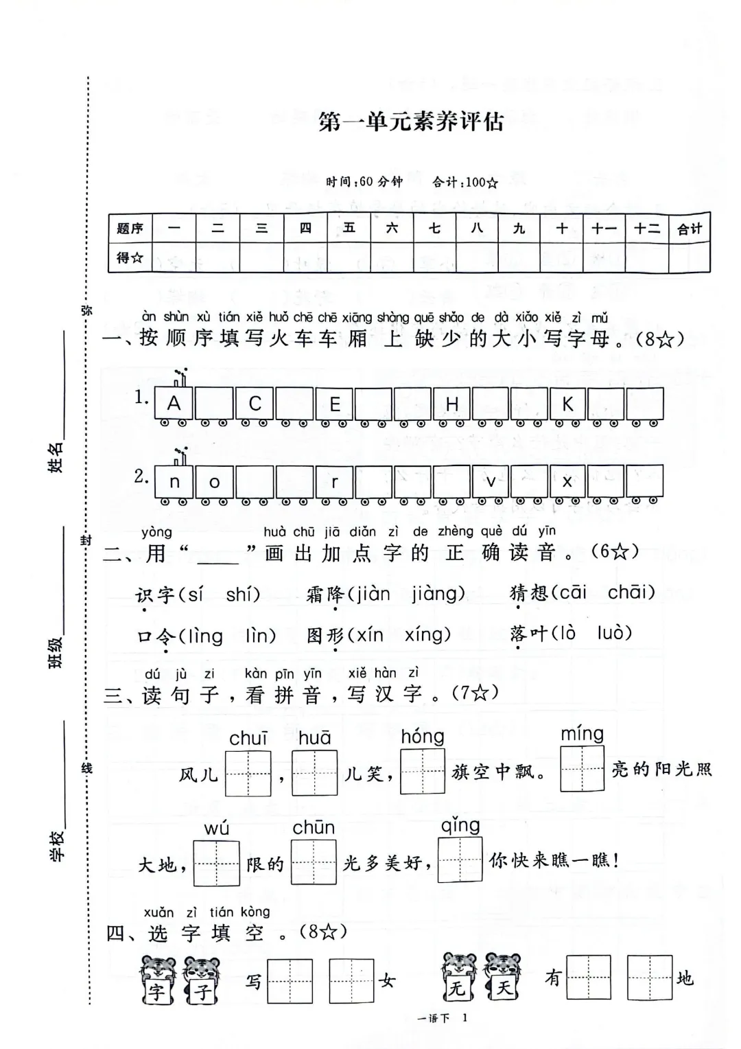 2026年春新部编版一年级下册语文《全册1-8单元素养卷+期中期末测试卷》10套附答案‖可打印