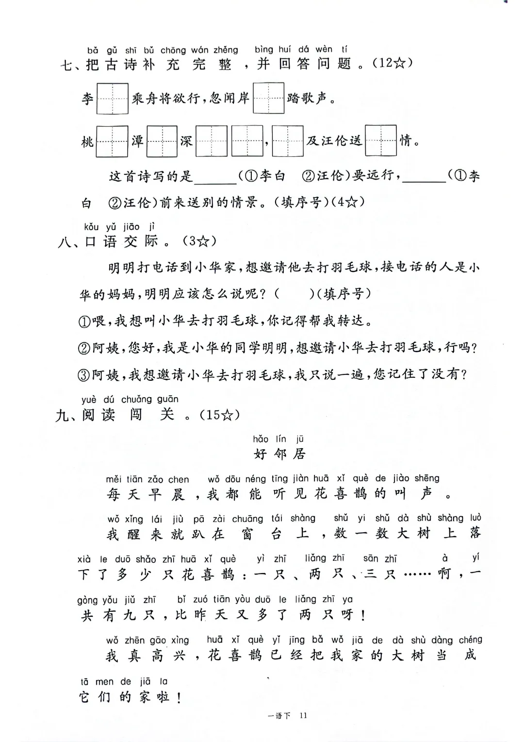 🌟今日给大家分享的:2026年春新部编版一年级下册语文《全册1-8单元素养卷+期中期末测试卷》10套附答案‖电子版可打印