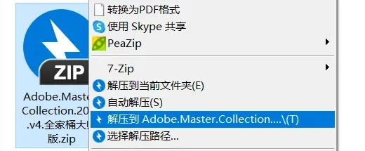 1.打开下载好的文件夹(文件夹所偶有内容必须全部下载),找到压缩包鼠标右键选择【解压到Adobe.Master.Collection.2025.v4.全家桶大师版\】。