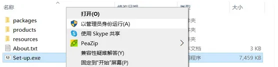 3,找到【Set-up.exe】应用程序,鼠标右键选择【以管理员身份运行】。