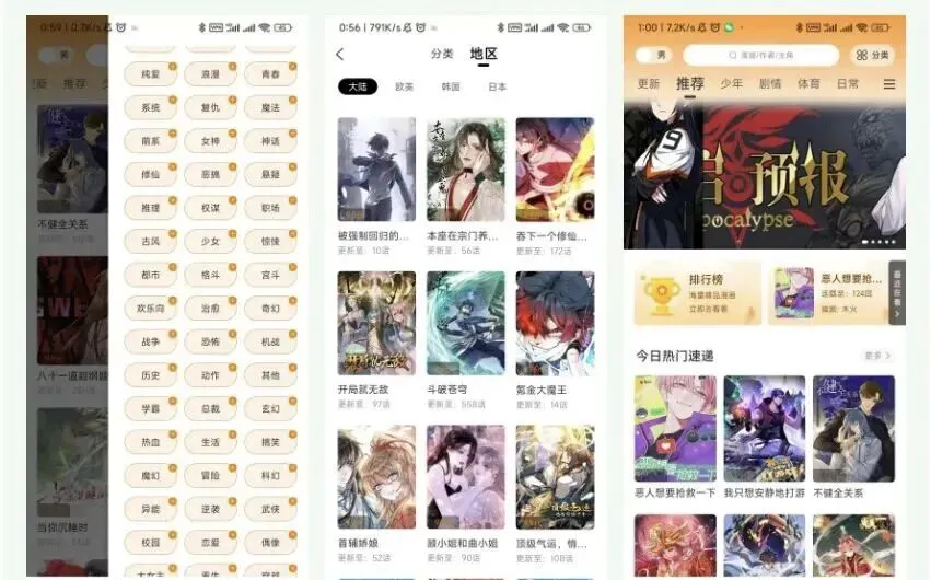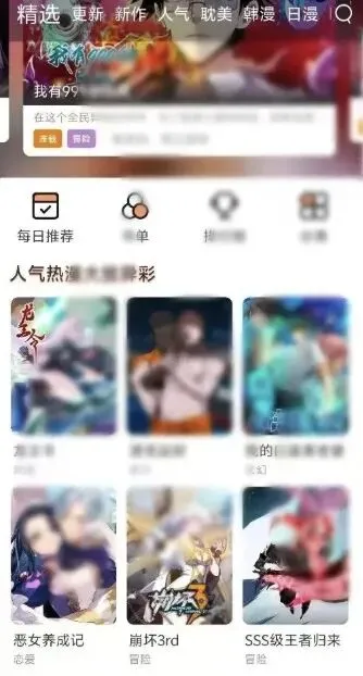 这款漫画 APP 主打小说漫改作品,题材超全,涵盖少年、剧情、体育、日常、轻小说、修真等多种类型,和上面那款内核一致,属于同系列优质版本。