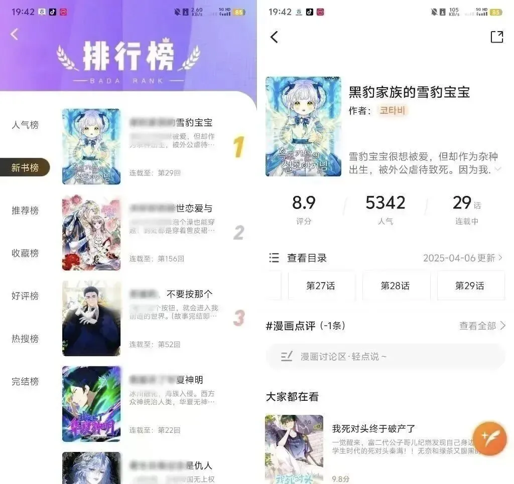 而喵上漫画同样好用,支持下载、收藏、智能推荐等功能,方便你管理自己的追漫清单。还自带评论区与互动交流功能,能和同好一起聊剧情、分享追漫心得,体验非常完整。