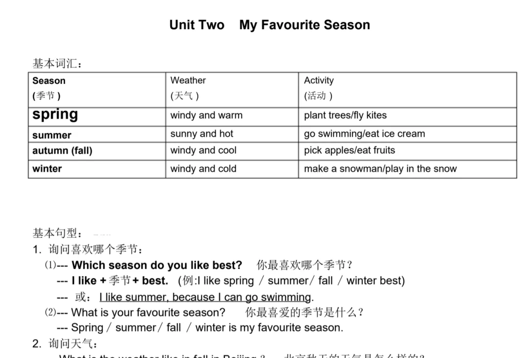 小学五年级下册英语各单元知识重点|免费下载可打印