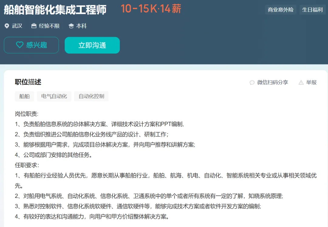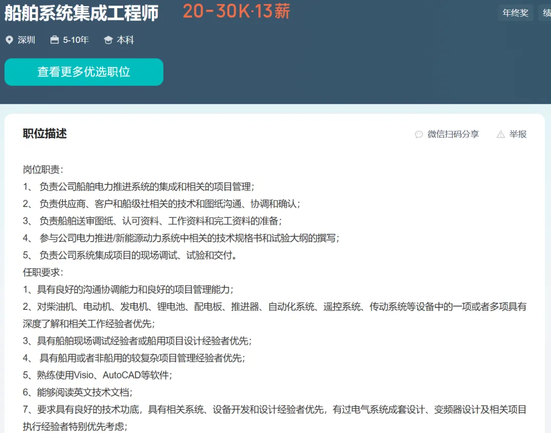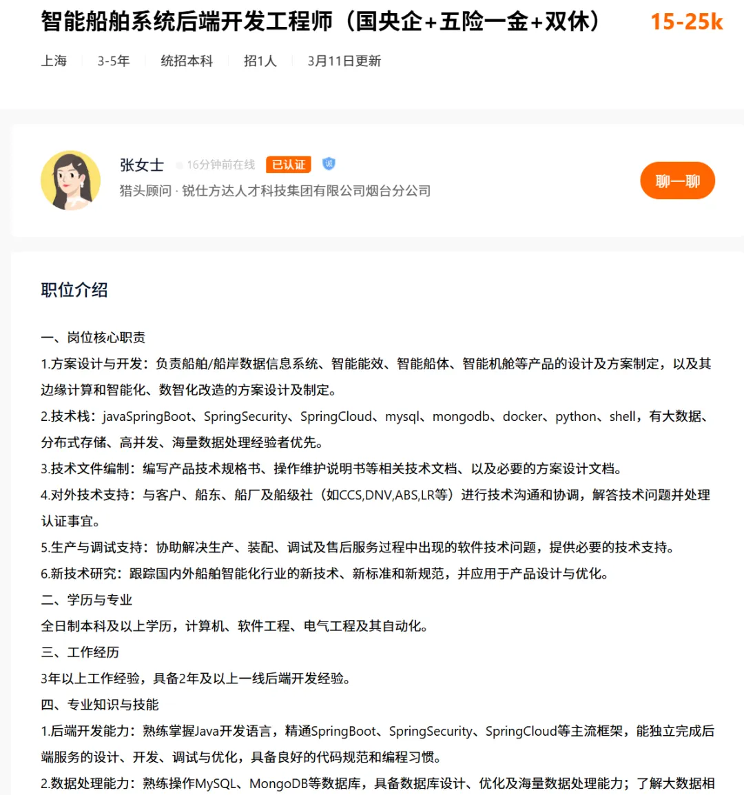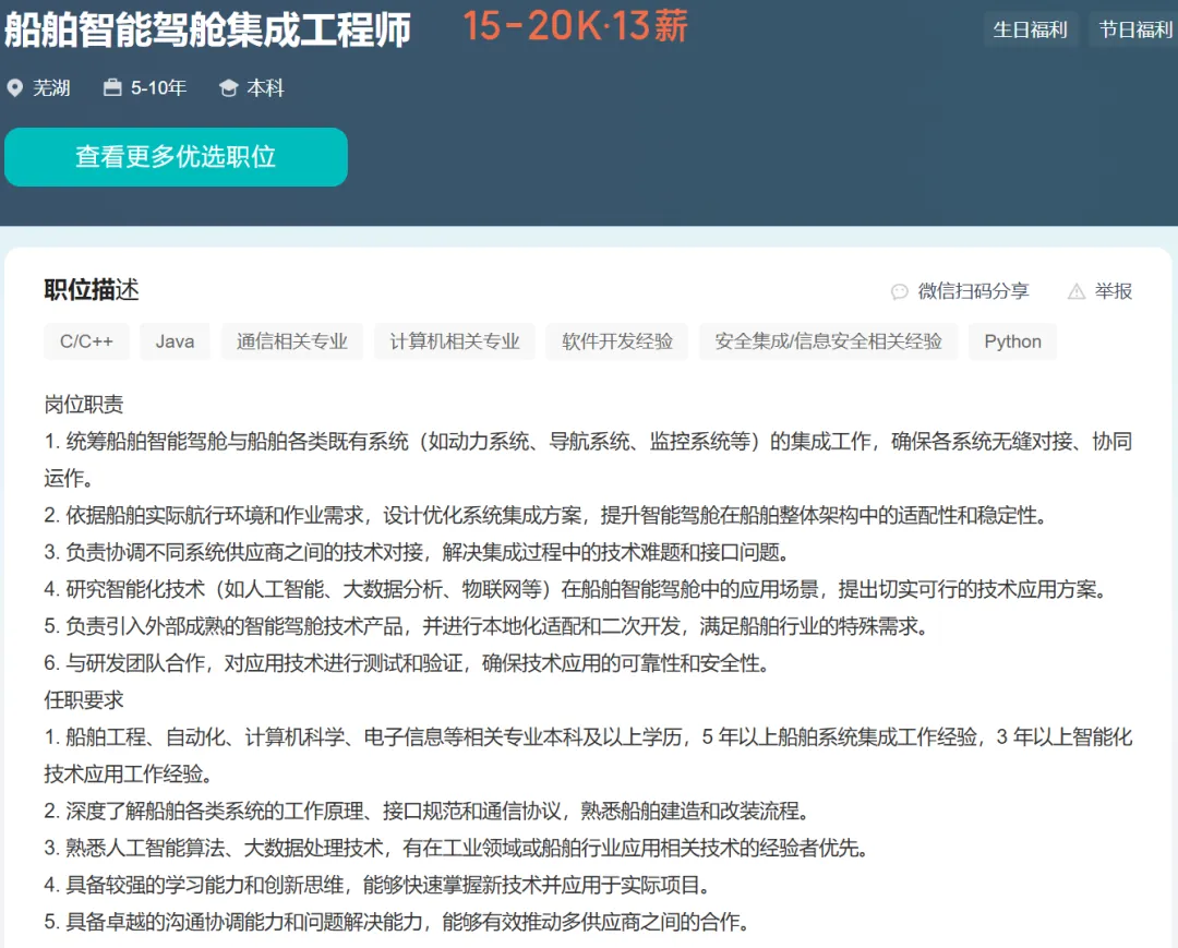 资深:主导过国家级智能船舶科研项目、持有国际高端认证者,薪资远高于行业平均水平