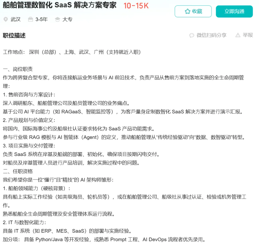 1.船舶管理数智化 SaaS 解决⽅案专家工作内容_深圳网新新思2026年船舶管理数智化 SaaS 解决⽅案专家工作要求-BOSS直聘 ![]() 2.「上海杨浦区 船舶智能化解决方案工程师(AI应用)招聘」_2026年华海智汇技术有限公司招聘-智联招聘 |