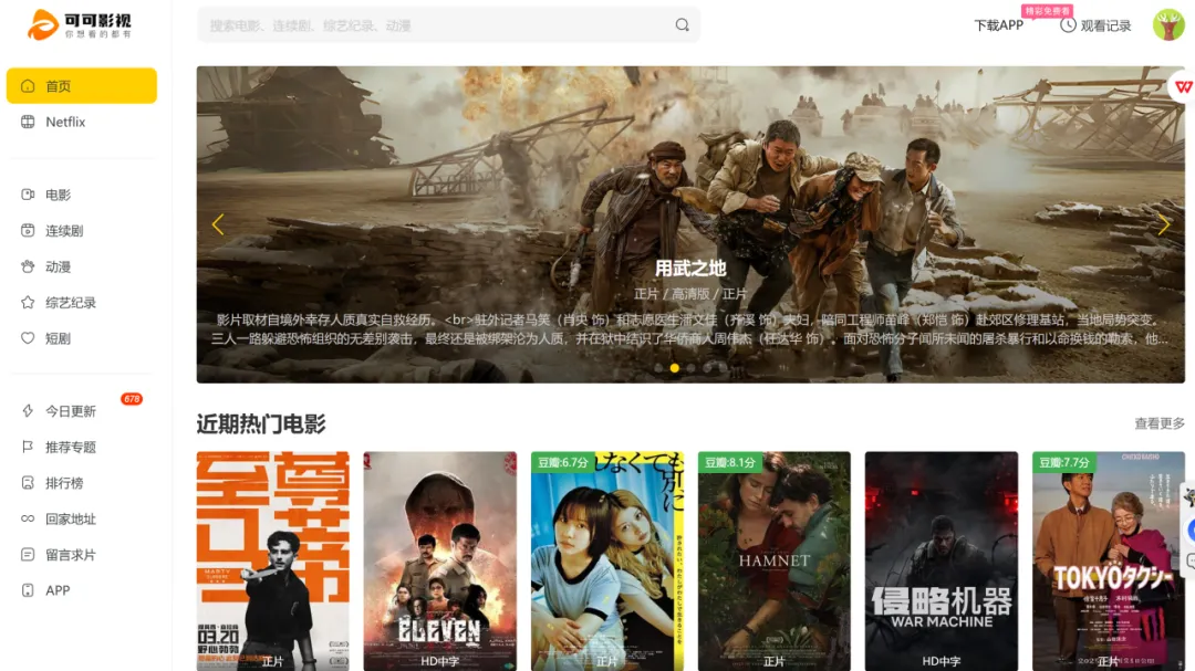 7️⃣可可影视(感觉和网飞猫网页版差不多)