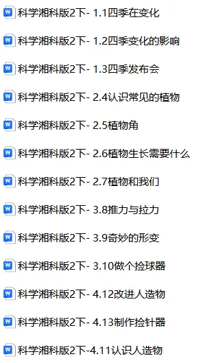 【新教材】2026春 湘科版小学二年级科学下册 课件+核心素养教案(全套下载)可打印 下载原文请拉到文末 下载原文请拉到文末 01 资料目录 下拉到文章底部有二维码的地方下载 02 部分课件展示 版面有限 仅展示部分内容 03 部分教案展示 版面有限 仅展示部分内容 下载方法 长按二维轻松下载 电脑下载,方便保存 复制网址去电脑打开: https://jazpan.com/view/2441940 更多资源,关注以下公众号 教师·学生 图文来自网络,版权归原作者,如有不妥,告知即删 点击阅读原文下载1-12年级全部资