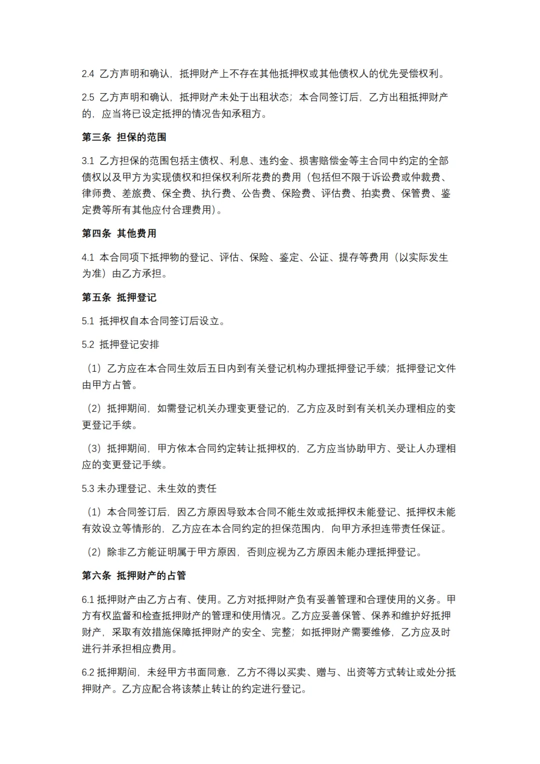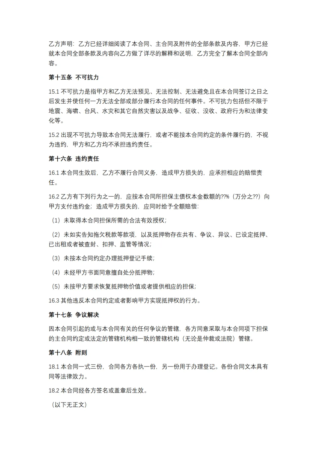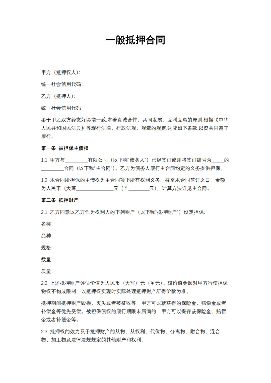 一般抵押合同模板,WORD文档电子版,可免费下载打印