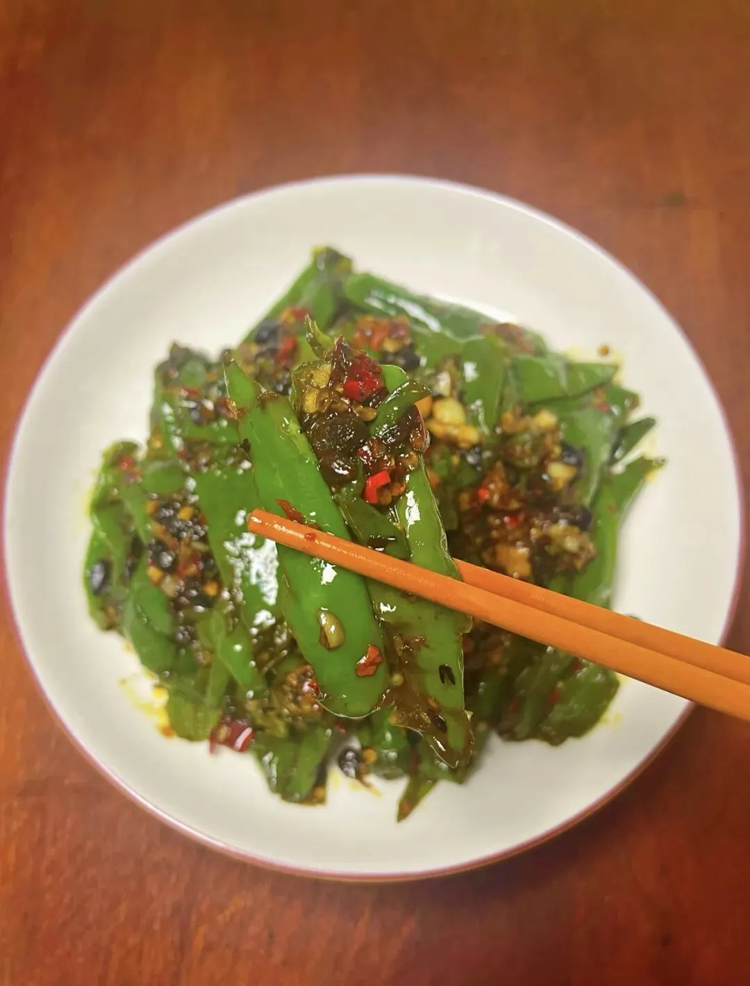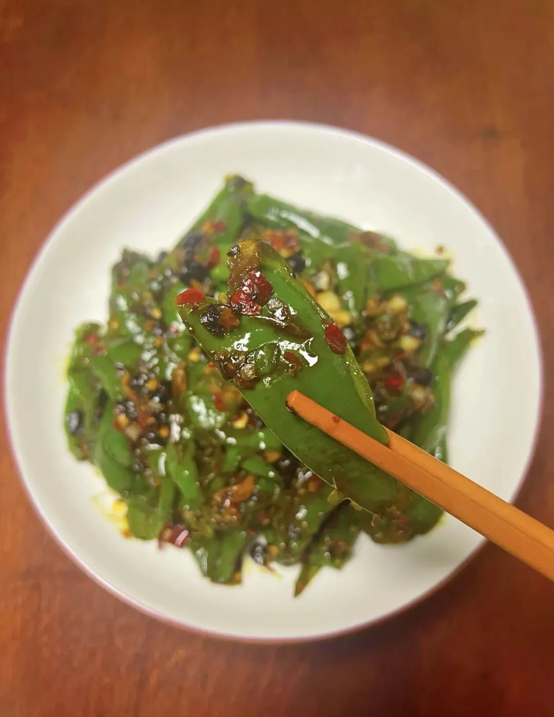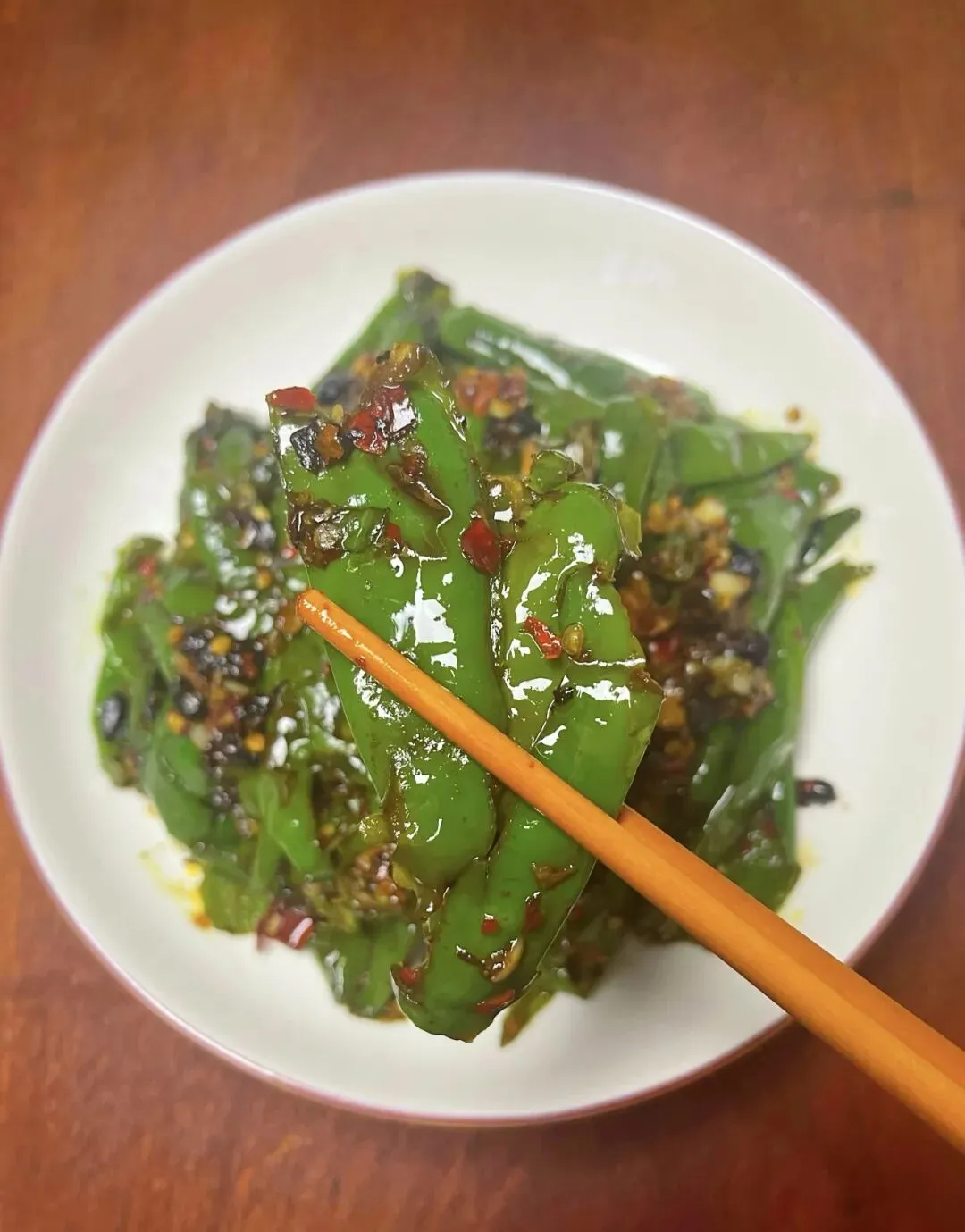 小时候家里条件一般,妈妈总爱把线椒拍扁,在铁锅上小火慢煎。听着“滋滋”的声响,看着青椒慢慢起皱、焦香四溢,我就攥着筷子守在灶台边。妈妈会撒上一把豆豉、蒜末和干辣椒碎,淋上生抽和少许糖,翻炒几下就出锅。那时候总觉得,这盘煎辣椒比任何山珍海味都香,就着它能连扒两碗白米饭。
