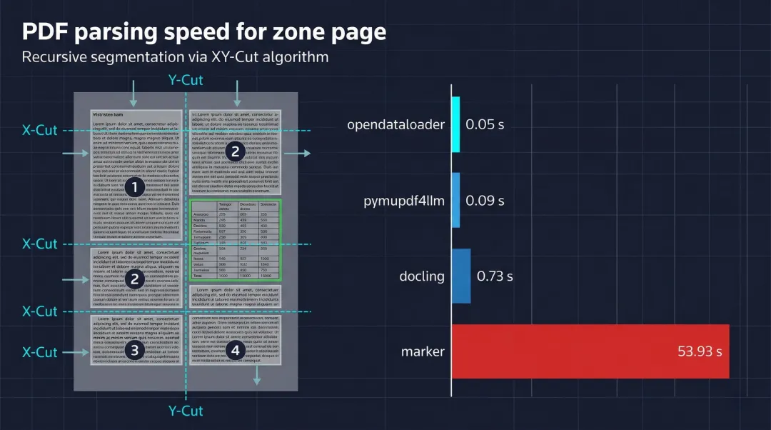 它走的是纯规则路线,核心是一套叫XY-Cut++的版面分割算法。说白了就是用坐标计算来判断哪些文字属于同一列、哪些构成表格、阅读顺序该怎么排。