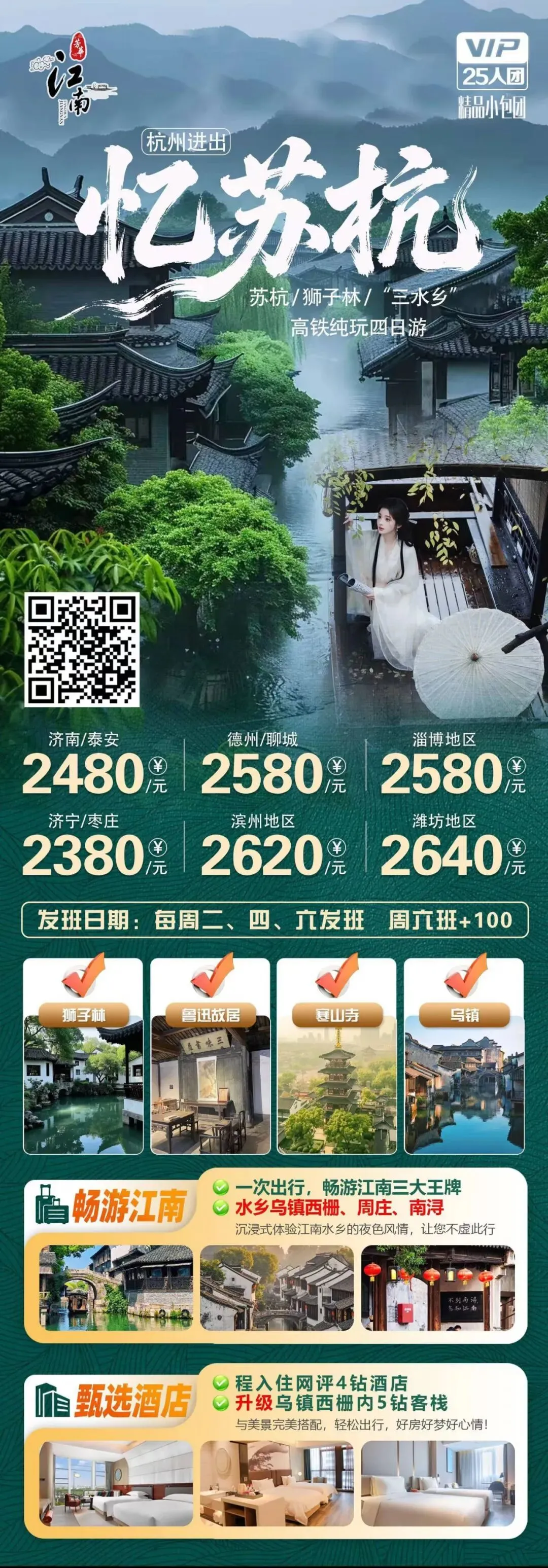 清明假期精选合集(3-4日游)—江南韵味南京扬州、苏杭园林水乡、黄山千岛湖宏村、西安秦陵博物院大唐不夜城 产品咨询请加客服企业微信 山东中铁国际旅行社有限公司 济南市经八路9号 0531-82420888、82420889