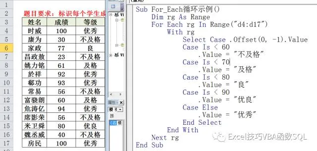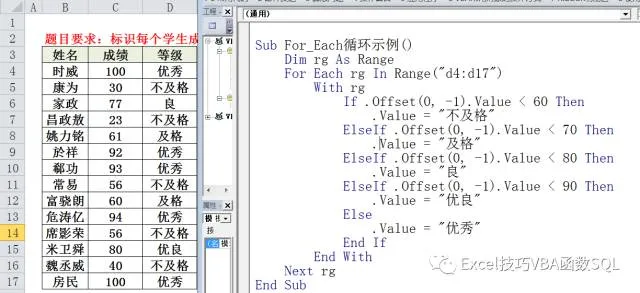 Offset(0,-1):引用成绩列,在前面的文件也介绍过。