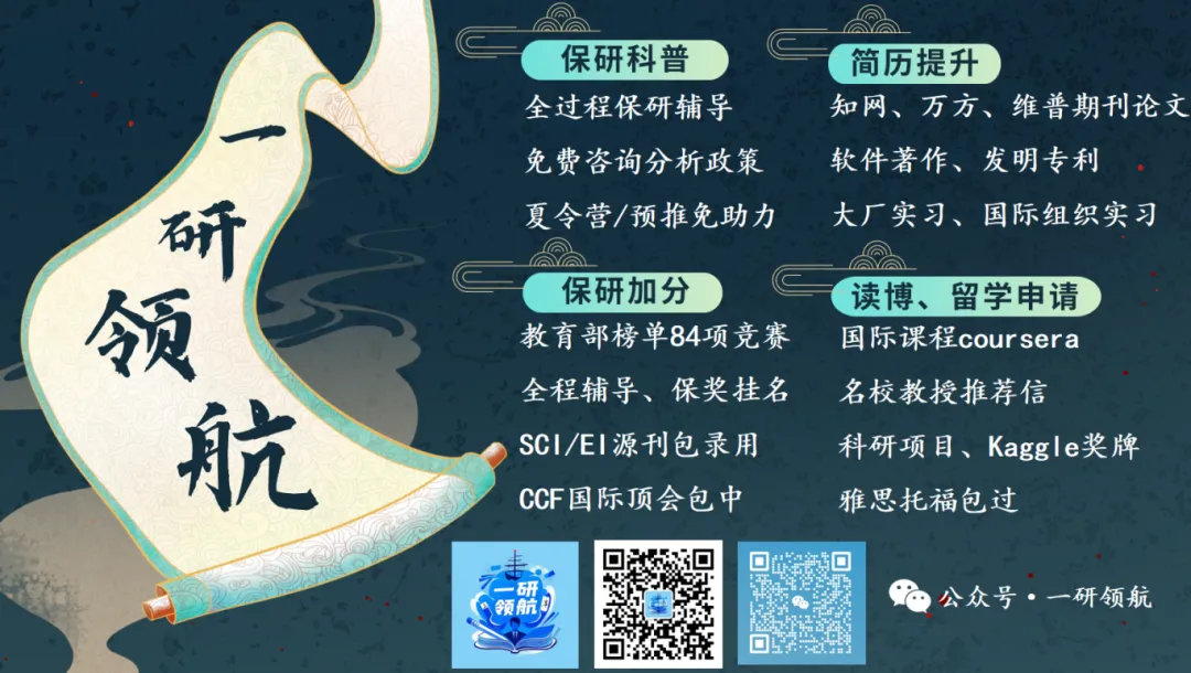 针对越来越卷的保研、升学市场,一研领航工作室致力于打破大家的信息差,专门提供竞赛保奖服务/职称评审/读博留学,专注于为大家简历提升提供强有力的支撑材料,提高个人核心竞争力!