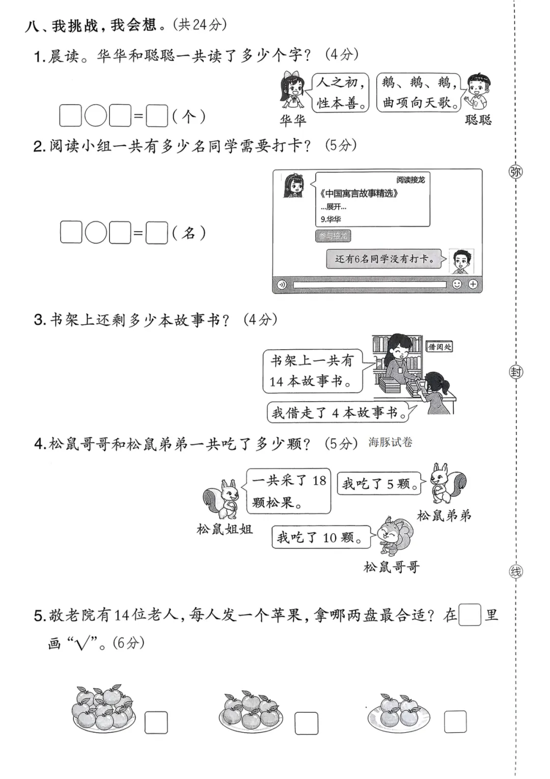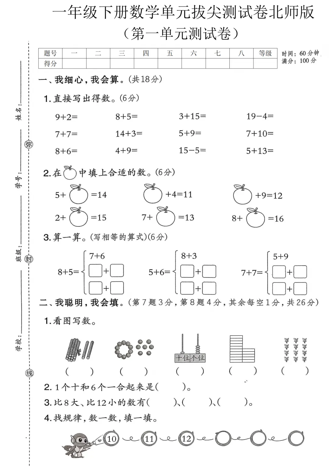 26春 北师大版 一年级下册数学《第一单元测试卷》含答案 电子版 可打印下载