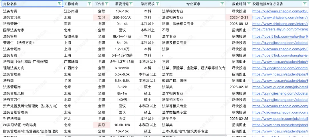 《26届法学专业岗位汇总表》