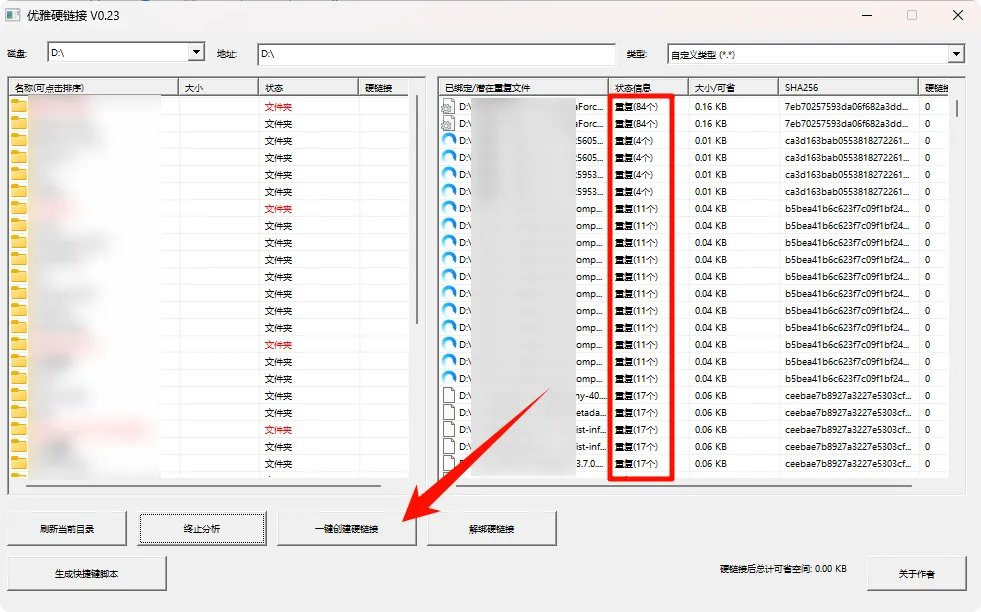 5. 点击”一键创建硬链接”,自动完成转换